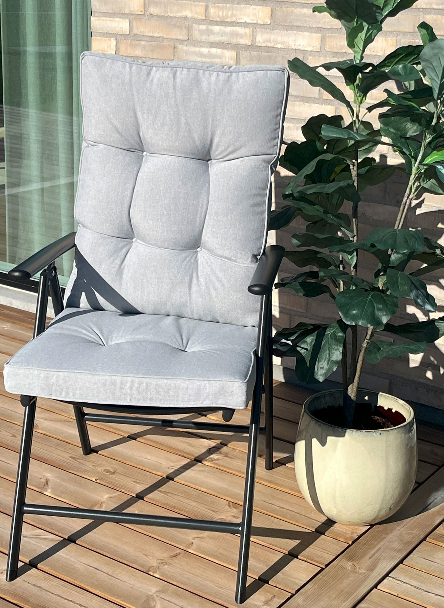 Framsidan »Inredning » Trädgård Exklusiva trädgårdskuddar till positionsstol 4 st. - Extra mjuka 7 cm tjocka lyx trädgårdskuddar till hög stolrygg - Modern knappdesign grå stolsdynor - UV-skyddade Nordstrand Home dynor 4 st. Spara43% Nordstrand Home 3.999,002.279,00SEKSpara 1.720,- Fri frakt på denna varaFåtal i lager Trustpilot Antal Lägg i varukorgen Se mer från: Nordstrand Home Artikelnummer:HA-POS-301-4 Har du frågor om produkten? Lyxiga dynorHög komfortUV-skyddad & vattenavvisande Typ: 4 st. Exklusiva trädgårdskuddar till positionsstol (trädgårdsstol med hög rygg) Rygg höjd: 70 cm Sitsdjup: 50 cm (bredd: 50 cm) Tjocklek: 7 cm Färg: Ljus grå Fyllning: PU-Skum i sits & mjukt skum ryggstöd Överdrag: UV-resistent polyester Vattenavvisande: Ja Skötsel: Rengöras med fuktig trasa Märke: Nordstrand Home Modell: Exklusiv Certifiering: STANDARD 100 by OEKO-TEX® (SH025 165885 TESTEX). Din garanti för att produkten är fri från hälsofarlig kemi. Trädgårdskuddar paket med 4 st. trädgårdskuddar. Exklusiva och tjocka trädgårdskuddar till positionsstol, med lyxig komfort och modern knappkuddsdesign. Dynor till din trädgårdsstol som ger absolut max komfort, med en ideal balans av fast PU-skum i sitsen, mjukt skumfyllning och bra stöd i ryggen. Kombinera en tur i trädgården med exklusiv komfort och njut av de långa sommardagarna och kvällarna lite extra, med stolsdynor som dessa. Den vackra designen känns inte bara skön, men är också en fröjd för ögat i dina trädgårdsmöbler. Komplettera utomhusinredningen med ett trädgårdskuddar paket med 4 st. trädgårdskuddar. Ultimata läckra trädgårdskuddar, som passar perfekt till alla vanliga positionsstolar - även en trädgårdsstol med hög stolrygg eller en loungestol med hög rygg är dynan ofta använd i. Vill du att dina trädgårdsmöbler är vackra, stilfulla, mjuka och inbjuder till många mysiga timmar utomhus på terrassen eller i trädgården, så går du inte fel med Exklusiva trädgårdskuddarna. Den tjocka skumkärnan ger dynan max komfort - dessutom är stolsdynan tillverkad med slitstarka material, som också är skyddade mot vind, väder och inte minst solens strålar. De exklusiva positionsstols trädgårdskuddarna är klädda med ett standard strukturvävt polyesteröverdrag, som är särskilt slitstarkt och UV-resistent. Detta innebär att dynorna bättre kan motstå växlande väderförhållanden - och särskilt solens strålar, utan att blekna i färg eller förlora form. Dynorna är också yttrebehandlade, så de är vatten- och smutsavvisande, samt har snabbtorkande fyllning och överdrag. Stolsdynorna är därför lätta att underhålla, eftersom de lätt kan rengöras med en fuktig trasa. Dynan fästs med justerbar spännrem bakom stolryggen, samt snören på varje sida. Sjunk ner i dessa läckra trädgårdskuddar och njut av den unika komforten - en trädgårdskudde till din trädgårdsstol som inte kompromissar med material eller modern design. Dynorna sätter final touches på dina trädgårdsmöbler, och gör även en vanlig trädgårdsstol till en vacker och mjuk njutning. Med Nordstrand Home är du säker på hemtextilier i dansk design - i nordisk stil. Nordstrand Home lägger stor vikt vid känslan av välbefinnande i en vacker, men samtidigt, avkopplande miljö. Med Nordstrand Home behöver du inte kompromissa, du hittar alltid produkter i klassiska och moderiktiga färger. Nordstrand Home – Så känner du dig hemma! Tillbaka till Trädgård