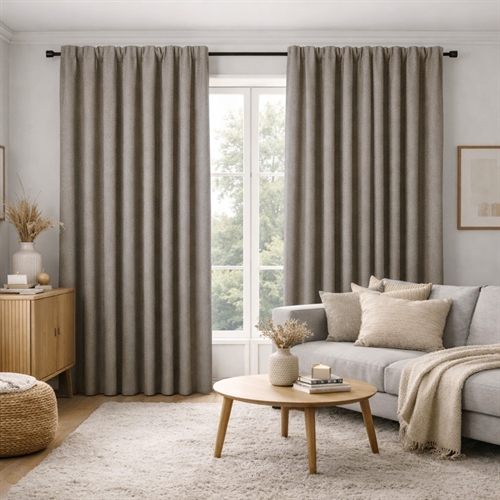 Ett modernt och tidlöst textilgardin tillverkat i polyester, som är lätt att underhålla och sätta upp. Förutom att vara praktiskt i bruk, tillför ett snyggt vävt tyg också en känsla av estetisk värme till ditt hem. Det kraftiga gardinet är vävt helt tätt, vilket gör att gardinet också är ljusdämpande, utan att vara 100% mörkläggande. Det passar därför bra till vardagsrum, matsalar, sovrum och andra platser där design och funktion ska fungera tillsammans.
