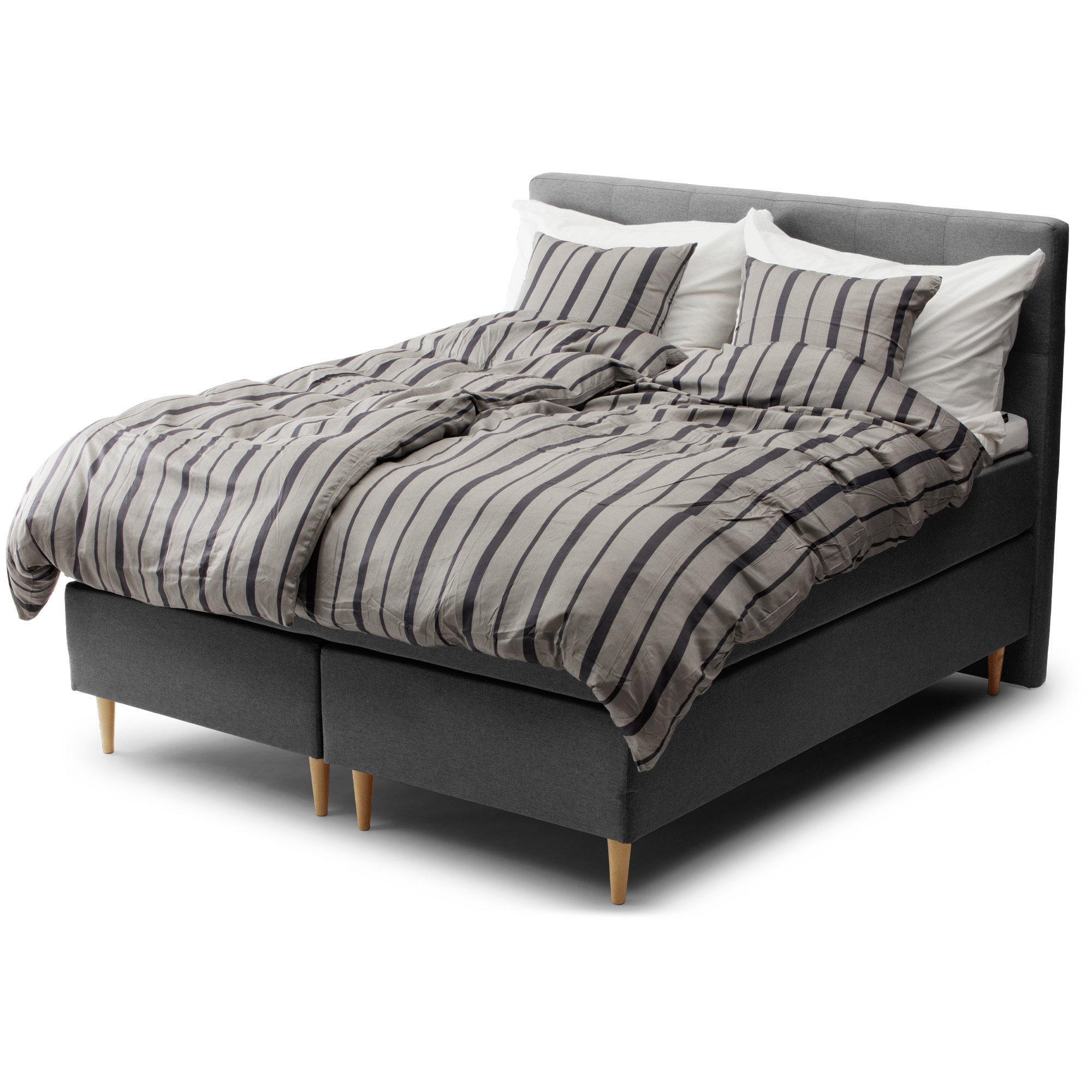 Framsidan »Sängkläder Extra mjukt sängkläder 140x200 cm - 100% bomullssatin - Grå och svart randigt sängset - 300 TC sänglinne från By Borg Spara57% By Borg 1.599,00685,00SEKSpara 914,- I lager Trustpilot Antal Lägg i varukorgen Se mer från: By Borg Artikelnummer:800-1 Läs vår sängklädesguide Se vårt stora utbud av lakan Se vårt stora utbud av täcken 140x200 Har du frågor om produkten? Extra fin & tät vävning - 300 TCLyxig mjukhetHög andningsförmåga & komfort Täcke: 140x200 cm Kuddfodral: 1 st. á 60x63 cm Material: 100% bomullssatin Vävning: Extra fin 300 TC vävning (Thread count = antal trådar per kvadrattum) Färg: Grå och svarta ränder Design: Lana randig Varumärke: Excellent By Borg Stängning: Täcke- och kuddfodral med inre dold dragkedja TVätt: 60° Torktumling: Ja Sträckning: Ja Certifiering: STANDARD 100 by OEKO-TEX® (M24LKFHY1 Hohenstein HTTI). Din garanti för att produkten är fri från hälsofarliga ämnen. Lyxigt 100% bomullssatin sängkläder, med en klassisk randig design i lugna färger. Ett sängset med fokus på hög komfort, andningsförmåga och en härlig mjukhet. Som kombinerar kvalitetsmaterial med en stilren design, och tillsammans skapar ett sänglinne som ger din sovmiljö en känsla av hemtrevlig lyx. Sängkläderna är tillverkade i 100% bomullssatin, med en extra tät och fin vävning på 300 TC. Denna täta TC ger sängsetet en helt unik och lyxig mjukhet. Kännetecknet för denna typ av sänglinne är just den extraordinära mjukheten och känslan av det kraftiga materialet. Den fina bomullssatinen som är vävd av extra fina garner och har en helt tät vävning på hela 300 TC, vilket indikerar att det är inte mindre än 300 fina trådar vävda tillsammans per kvadrattum - och ju högre TC, desto tätare är vävningen. Kombinationen av den höga TC, fina bomullssatintrådar och vävmetodens art, gör att sängsetet inte bara är otroligt skönt att sova med, men också har en hög slitstyrka, andningsförmåga och absorberingsförmåga. Sängsetet är 100% genomfärgat, vilket innebär att färgen under produktionen binds i bomullsfibrerna och ger sängkläderna en hög färgäkthet. Detta gör att materialets färg och design bevaras även efter upprepade tvättar. Sängsetet stängs med dold dragkedja i både täcke och kuddfodral. Köp lätt kuddfodral till dina extra kuddar här Passa samtidigt på att säkra ökad sovkomfort, genom att lägga till ett nytt mjukt lakan av hög kvalitet. Du hittar vårt stora sortiment av kvalitetslakan här Excellent By Borg har med sina danska producerade täcken och kuddar, samt fantastiska sängkläder fokus på komfort och sömnoptimering. De vet att källan till en bra vardag och hög livskvalitet är kopplad till en optimal och god nattsömn. Därför har de gjort det lätt för dig att hitta de rätta sovkomponenterna, som passar just ditt behov. Produkterna från Excellent By Borg ger dig mycket hög kvalitet samt en noggrann certifiering. Tillbaka till Sängkläder