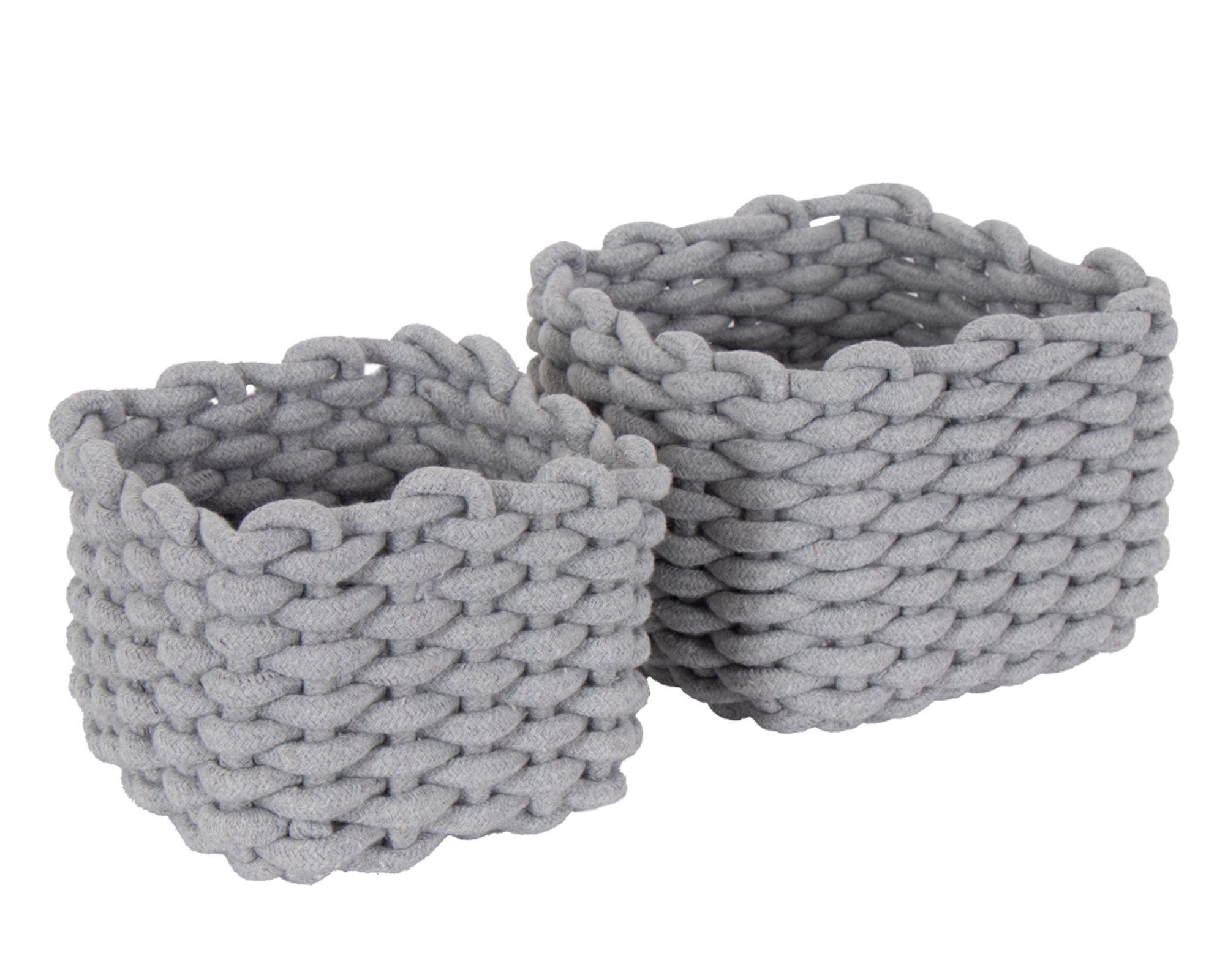 Dessa charmiga bomullskorgar erbjuder en elegant och praktisk lösning för förvaring i ditt hem. De är omsorgsfullt flätade med slitstarkt bomullsrep, vilket säkerställer långvarig hållbarhet och ett unikt utseende. Använd korgarna för att organisera små föremål eller helt enkelt som dekorativa inslag i varje hörn av ditt hem.