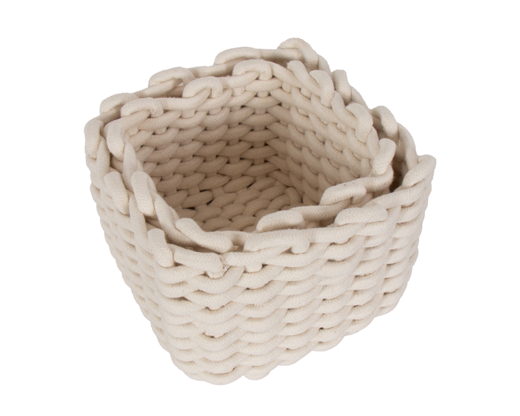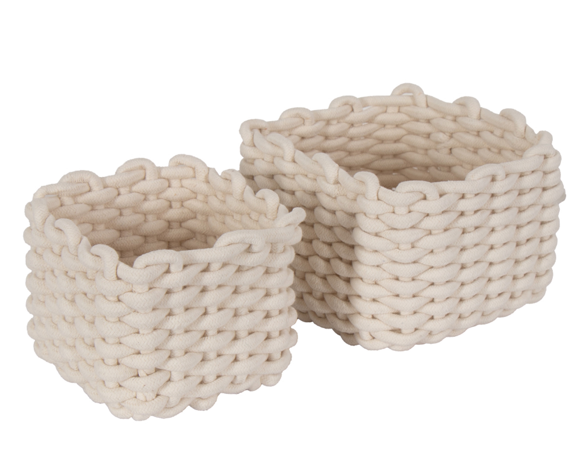 Flätade korgar av bomullsrep - 2 st. - Vita dekorativa förvaringskorgar för hemmet