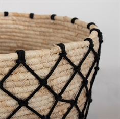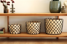 De svarta bomullssnörena som pryder våra korgar ger dem ett modernt och distinkt utseende. Bomull är känt för sin mjukhet och hållbarhet, vilket säkerställer att korgarna inte bara är praktiska, utan också behagliga att ta på.