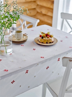 Skapa en oförglömlig och festlig borddukning med denna vackra långa Grattis-duk från Södahl. Den eleganta designen med broderade danska flaggor och prästkragar ger glädje, tradition och mys till ditt hem - perfekt för livets speciella ögonblick.