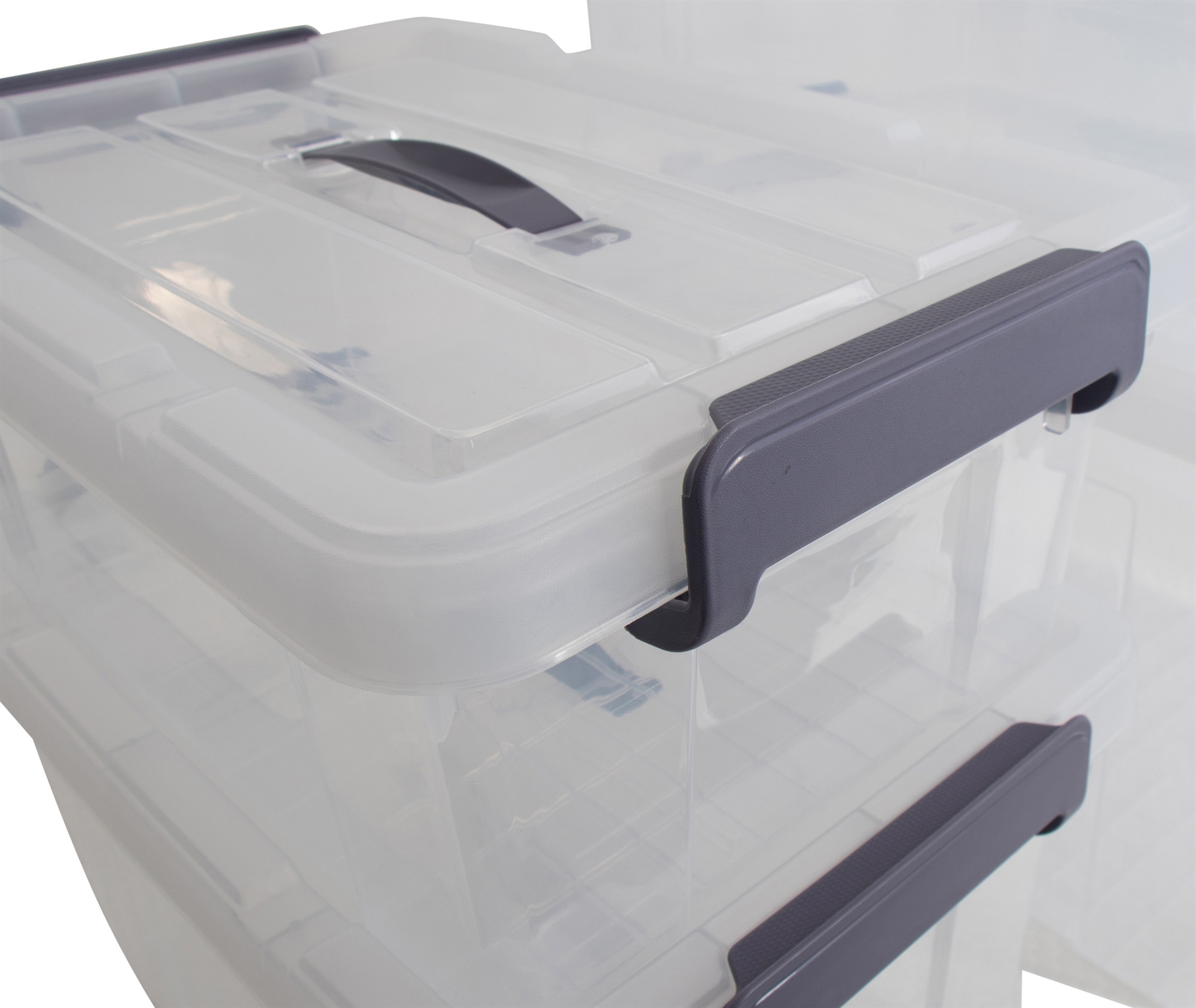 Framsidan »Inredning » Förvaring Förvaringslåda - 50 liter - Praktisk förvaringslåda med tättslutande lock - Transparent plastlåda Spara14% Home-tex 349,00299,00SEKSpara 50,- I lager Trustpilot Antal Lägg i varukorgen Se mer från: Home-tex Artikelnummer:PR832 Har du frågor om produkten? FörvaringslådaVolym: 50 literTransparent Typ: Förvaringslåda Material: Kraftig plast Mått: Bredd: 38 cm. Längd: 49 cm. Höjd: 31 cm. Volym: 50 liter Färg: Transparent Lock: Tättslutande lock med klämstängning Handtag: Praktiskt bärhandtag i kraftig plast. Effektiv och enkel förvaring med våra förvaringslådor Dessa 50-liters genomskinliga plastförvaringslådor är designade för att göra ditt förvarings- och organisationssystem mer effektivt och överskådligt. Med stapelbara lådor kan du enkelt hålla reda på dina tillhörigheter. Den genomskinliga plasten gör det enkelt att se vad som finns inuti varje låda, så du alltid kan hitta det du letar efter. Locket är tättslutande och klickar lätt på plats med starka stängningsklämmor som säkerställer att dina tillhörigheter förblir intakta. Kraftig plast Kraftig plast är ett otroligt hållbart material känt för sin motståndskraft mot slitage och skador. Det är också mycket lätt, vilket gör det enkelt att flytta och transportera. Dessutom är plast inte mottagligt för fukt eller vatten, vilket innebär att dina tillhörigheter förblir torra och säkra, även i fuktiga miljöer. Transparent design En av de största utmaningarna vid förvaring är att komma ihåg var du har lagt dina saker. Med vårt transparenta design behöver du inte längre gissa. Du kan enkelt se vad som finns inuti varje låda, vilket sparar tid och besvär. Detta är särskilt användbart för föremål som sällan används men som du fortfarande behöver ha enkel tillgång till när det behövs. Om du är intresserad av liknande produkter, besök kategorin förvaring. Tillbaka till Förvaring