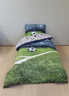Framsidan »Sängkläder » Sängkläder för barn » Sängkläder för Barn 140x200 cm Fotbolls-sengetøy - 140x200 cm - Stadion och fotbollsdesign - Påslakan med vändbart motiv - 100% bomulls sängset Spara30% Licens 499,00349,00SEKSpara 150,- I lager Trustpilot Antal Lägg i varukorgen Se mer från: Licens Artikelnummer:NB2356-1 Läs vår sängklädersguide Se vårt stora utbud av lakan Se vårt stora utbud av täcken 140x200 Har du frågor om produkten? Hög andningsförmågaMjukt och härligt bomullOEKO-TEX® certifierat Påslakan: 140x200 cm Kuddfodral: 60x63 cm Material: 100% mjuk bomull Färg: Grön, blå och grå Motiv: Vändbart motiv - framsida med motiv. Baksida med all-over-print av fotbollar Stängning: Påslakan med knappar och kuddfodral med överlapp Tvätt: 60° Torktumling: Ja Tål strykning: Ja Certifiering: STANDARD 100 by OEKO-TEX® (20220K2642 AITEX). Din garanti för att produkten är fri från skadliga kemikalier. Sengetøy för barn och fotbollsälskande själar. Tillverkad i 100% mjuk bomull, med ett smart motiv av en fotboll på en upplyst stadion, fotbollsplan och fotbollar. Ett tryck med fotbollar på en grå bakgrund fulländar sängkläderna med en lugn baksida. Ett slitstarkt bomulls barn-sängset som gör barnrummet lite mer spännande. Fotbolls-sengetøy med vändbart motiv, olika motiv på fram- och baksida. På ena sidan av sängkläderna finns ett motiv av en fotboll redo för hörnspark och i bakgrunden ser du en upplyst stadion. På andra sidan finns ett lugnt all-over-tryck av fotbollar på grå bakgrund. Varje fotbollsälskande pojke eller flicka kommer att bli glad för detta fotbolls-sängset. Sängsetet är tillverkat i 100% mjuk bomull som gör setet slitstarkt och med hög andningsförmåga. Den rena bomullskvaliteten ger ett härligt och mjukt sängset som bidrar till god sovkomfort för barnet. Bomullssengetøy kan tvättas i 60° i tvättmaskin, vilket också hjälper till att hålla en hög hygiennivå. Sängkläderna är dessutom OEKO-TEX certifierade, vilket är din garanti för att setet är fritt från skadliga kemikalier. Utforska favoriter och mycket mer i vårt stora utbud av tillbehör till barnrummet För barnet bör sängen vara en trygg plats och alla element ska tillsammans skapa mjuka och härliga omgivningar där barnet kan finna ro. Använd därför gärna barnets intressen för att skapa ett tryggt sovrum för barnet. Hos oss hittar du ett stort utbud av tillbehör till sängen och barnrummet, från övermadrasslakan till täcken, kuddar, sängkläder och mycket mer, samt massor av produkter med alla barnens favoriter. Alla dessa element kan bidra till att skapa rätt sovmiljö och rum för ditt barn. Här hittar du fina och mjuka kvalitetslakan Tillbaka till Sängkläder för Barn 140x200 cm