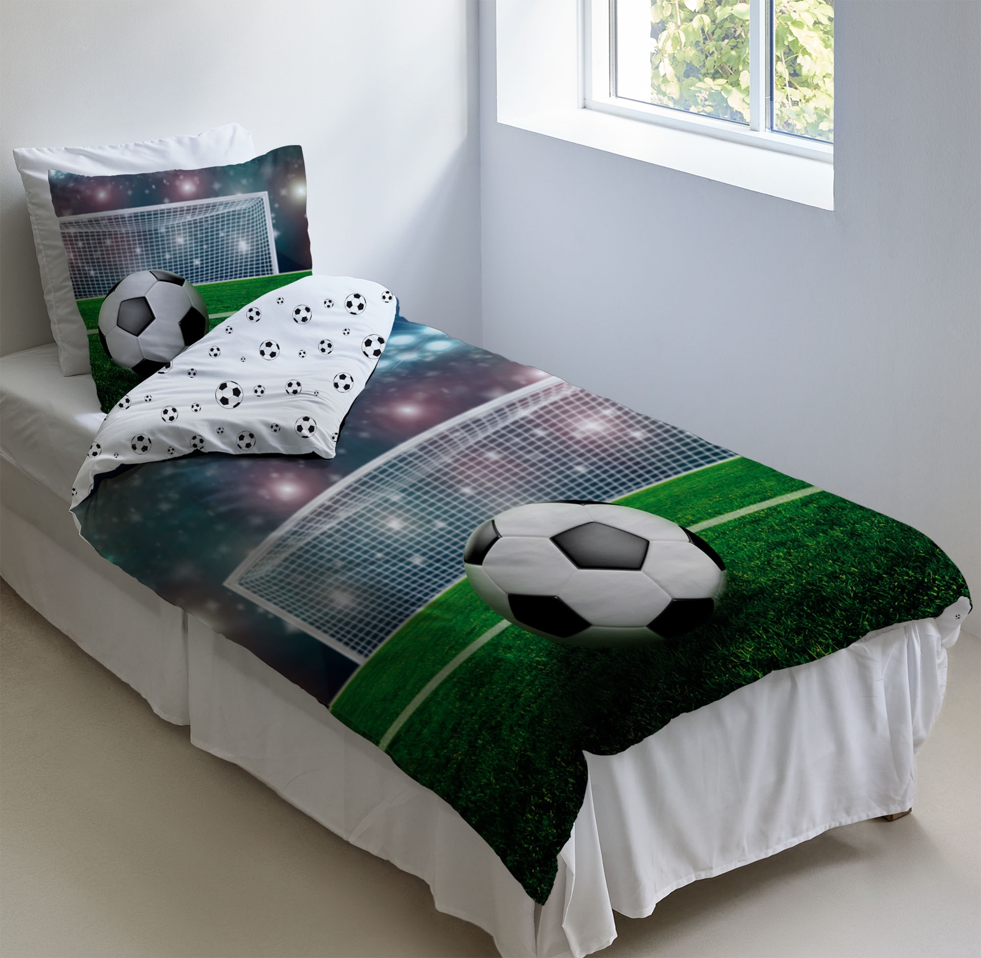 Framsidan »Sängkläder » Sängkläder för barn » Sängkläder för Barn 140x200 cm Fotbolls-sengetøy - 140x200 cm - Stadion - Fotbolls påslakan med vändbart design - 100% bomullssängset Spara46% Licens 499,00269,00SEKSpara 230,- I lager Trustpilot Antal Lägg i varukorgen Se mer från: Licens Artikelnummer:1850-1 Läs vår sängklädselguide Se vårt stora utbud av lakan Se vårt stora utbud av sommartäcken 140x200 Har du frågor om produkten? Hög andningsförmåga och kvalitetMjukt och härligt bomullOEKO-TEX® certifierat Påslakan: 140x200 cm Kuddfodral: 60x63 cm Material: 100% mjuk bomull Färg: Vit Motiv: Vändbart design - framsida med fotbolls-motiv av boll och stadion, baksida med bollar Stängning: Påslakan med knappar och kuddfodral med överlapp Tvätt: 60° Torktumling: Ja Tål strykning: Ja Certifiering: STANDARD 100 by OEKO-TEX® (11-67789 Shirley). Din garanti för att produkten är fri från hälsofarlig kemi. Sängset med ett häftigt motiv av en fullpackad fotbollsarena och en fin baksida med motiv av små fotbollar på vit bakgrund. Det mjuka sängsetet tillverkat i 100% bomull är både andningsbart och absorberande, och ger god sovkomfort. Ett slitstarkt bomullsbarnsängset som gör barnrummet lite mer spännande. Fint och härligt sängset för det fotbollsintresserade barnet. Sängsetet är vändbart, med olika motiv fram och bak. På ena sidan av sängsetet finns ett motiv av en fotboll som är redo för en ordentlig spark mot mål. Vänder du på setet finns ett all-over tryck av fotbollar på vit bakgrund. Sängsetet är tillverkat i 100% mjuk bomull som gör setet slitstarkt och med hög andningsförmåga. Den rena bomullskvaliteten ger ett härligt och mjukt sängset som bidrar till god sovkomfort för barnet. Bomullssängkläder kan tvättas i 60° i tvättmaskin, vilket också hjälper till att hålla en hög hygiennivå. Sängsetet är dessutom tillverkat med OEKO-TEX certifiering, vilket är din garanti för att setet är fritt från skadlig kemi. Utforska favoriter och mycket mer i vårt stora utbud av tillbehör till barnrummet För barnet bör sängen vara en trygg plats och alla element ska tillsammans skapa mjuka och härliga omgivningar där barnet kan finna ro. Använd gärna barnets intressen för att skapa ett tryggt sovrum för barnet. Hos oss kan du hitta ett stort utbud av tillbehör till sängen och barnrummet, från övermadrasslakan till sommartäcken, kuddar, sängkläder och mycket mer, med massor av produkter med alla barnens favoriter på. Alla element som kan bidra till att skapa rätt sovmiljö och rum för ditt barn. Här kan du hitta fina och mjuka kvalitetslakan Tillbaka till Sängkläder för Barn 140x200 cm