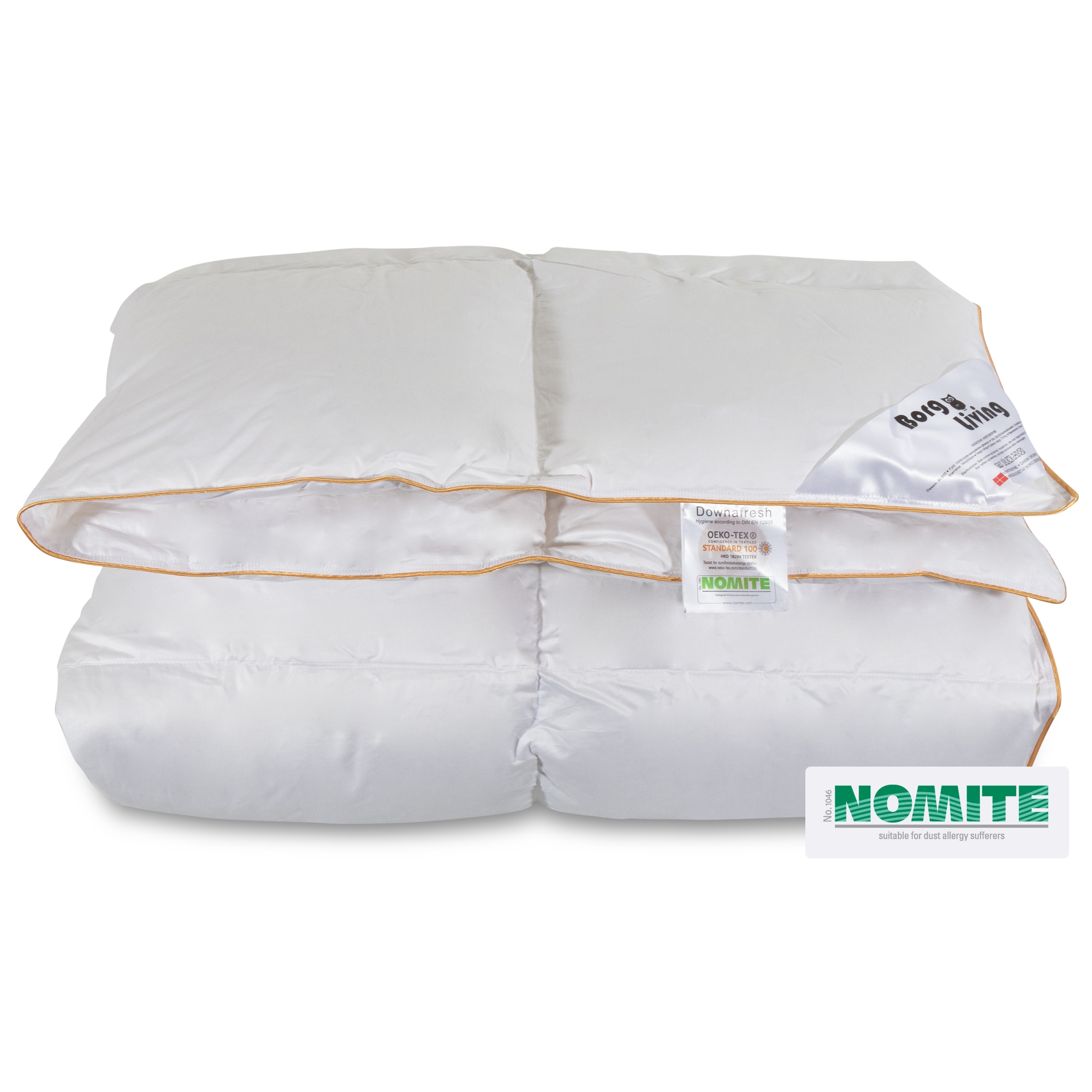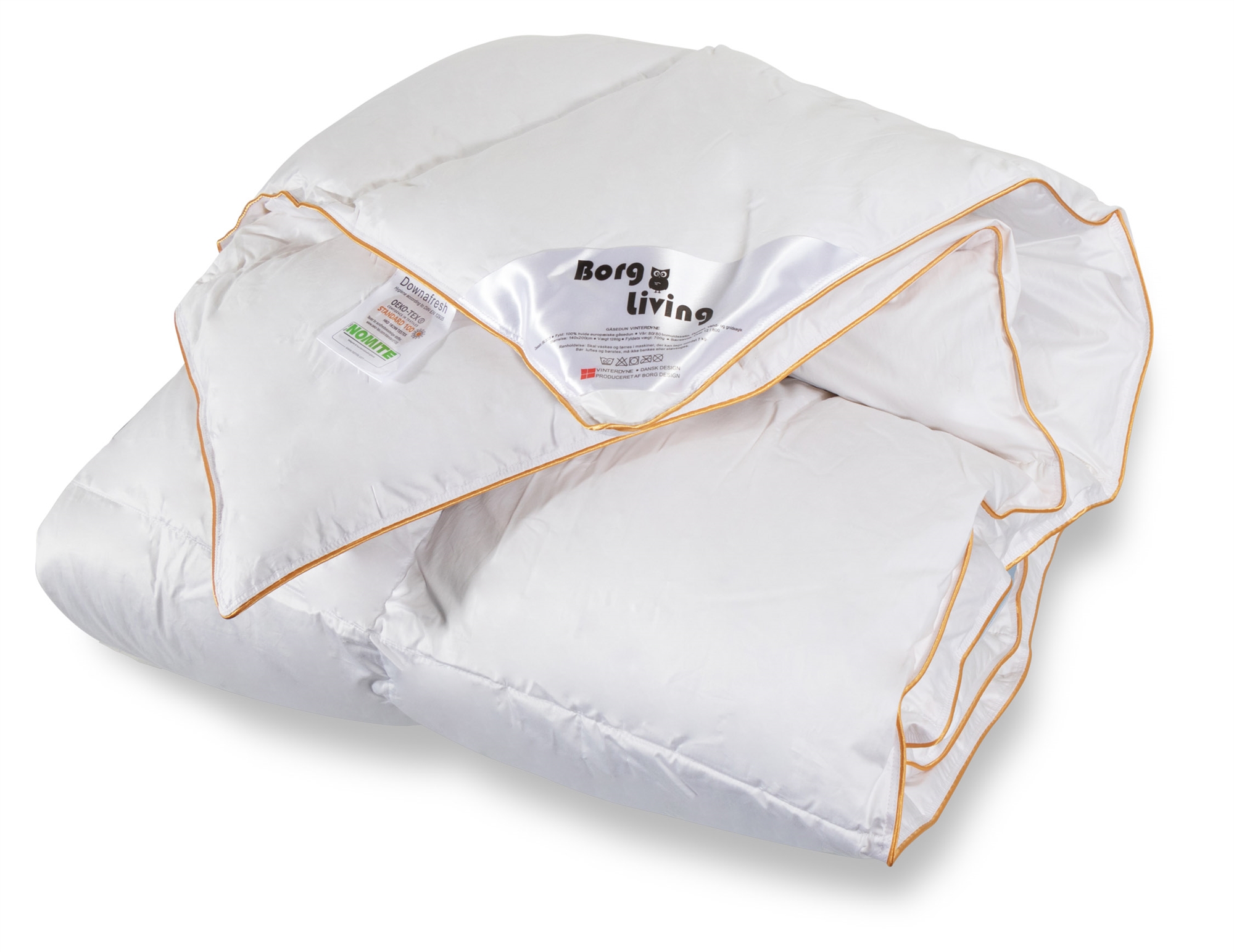 Framsidan »Täcken » Enkeltäcken » Enkeltäcke 140x200 cm Gåsduntäcke 140x200 cm - Varmt täcke - Borg Living duntäcke Spara49% Borg Living 4.699,002.399,00SEKSpara 2.300,- Fri frakt på denna varaI lager Trustpilot Antal Lägg i varukorgen Se mer från: Borg Living Artikelnummer:BL555 Läs vår täckesguide Läs om underhåll av täcken och kuddar Se vårt stora utbud av kuddar Har du frågor om produkten? Gåsduntäcke - Borg LivingBärighet: över 12100 % europeiskt gåsdun Storlek: 140x200 cm Typ: Varmt täcke Fyllning: 100 % vitt och rent europeiskt gåsdun Varumärke: Borg Living Fyllnadsvikt: 700 g Bärighet: Över 12 (gammal mätmetod) Bärighet: 800 (ny mätmetod) Yttertyg: 100 % bomullssatin 80/80 (Extra fin och mjuk) Konstruktion: 5x7 kassettäcke med guldkant Tvätt: 60°(Viktigt att använda enzymfritt tvättmedel) Torktumling: Torktumlas med torkbollar Garanti: 5 år Certifiering: STANDARD 100 by OEKO-TEX® (BEHO-062282) Certifiering: NOMITE - Fri från husdammskvalster Certifiering: DOWNAFRESH - 100 % rena dun Certifiering: Down pass - Högsta djuretiska villkor Se alla våra kuddar här Varmt helårs täcke med gåsdun från Danska Borg Living. Detta täcke för alla årstider är fyllt med 700 g vitt, mjukt och luftigt europeiskt gåsdun som ger ett fantastiskt fylligt täcke. Täcket har en bärighet på över 12 och passar extra bra för dig som älskar ett bra och jämnt tempererat täcke för alla årstider att mysa under. Se vårt stora utbud av sängkläder i 140x200 cm här Täcket är sytt i 5x7 kassetter, med inre kanaler som ser till att dunet fördelas jämnt utan att skapa köldbryggor. Yttertyget är tillverkat av 100% mjukt och lyxigt 80/80 bomullssatin, som är så tätvävt att husdammskvalster inte kan tränga igenom. Bomullssatinyttertyget är det mjukaste och mest lyxiga yttertyget som finns på marknaden. Det danska varumärket Borg Living producerar exklusiva serier av täcken, kuddar och hemtextilier för ditt hem. Varumärket, etablerat 2013, är känt för sin innovation inom kvalitet och design. Borg Livings fantastiska produkter bidrar till en optimal och bekväm nattsömn, samtidigt som de dekorerar ditt hem med moderna och stiliga hemaccessoarer. Tillbaka till Enkeltäcke 140x200 cm Du kanske också är intresserad av: Kudde "Hög" kudde - 60x63 cm - med gåsdun - kudde med tre kammare - Feng Shui EkologiskFeng Shui - Hög gåsdunskudde Bärighet: över 10 Ekologisk kudde 2.099,95 SEK1.699,00 SEK Kudde 'Medium/hög' - 60x63 cm - med gåsdun - 3-kammare kudde - Feng Shui EkologiskFeng Shui - Medium/hög kudde Bärighet: över 10 Ekologisk kudde 1.999,00 SEK1.599,00 SEK