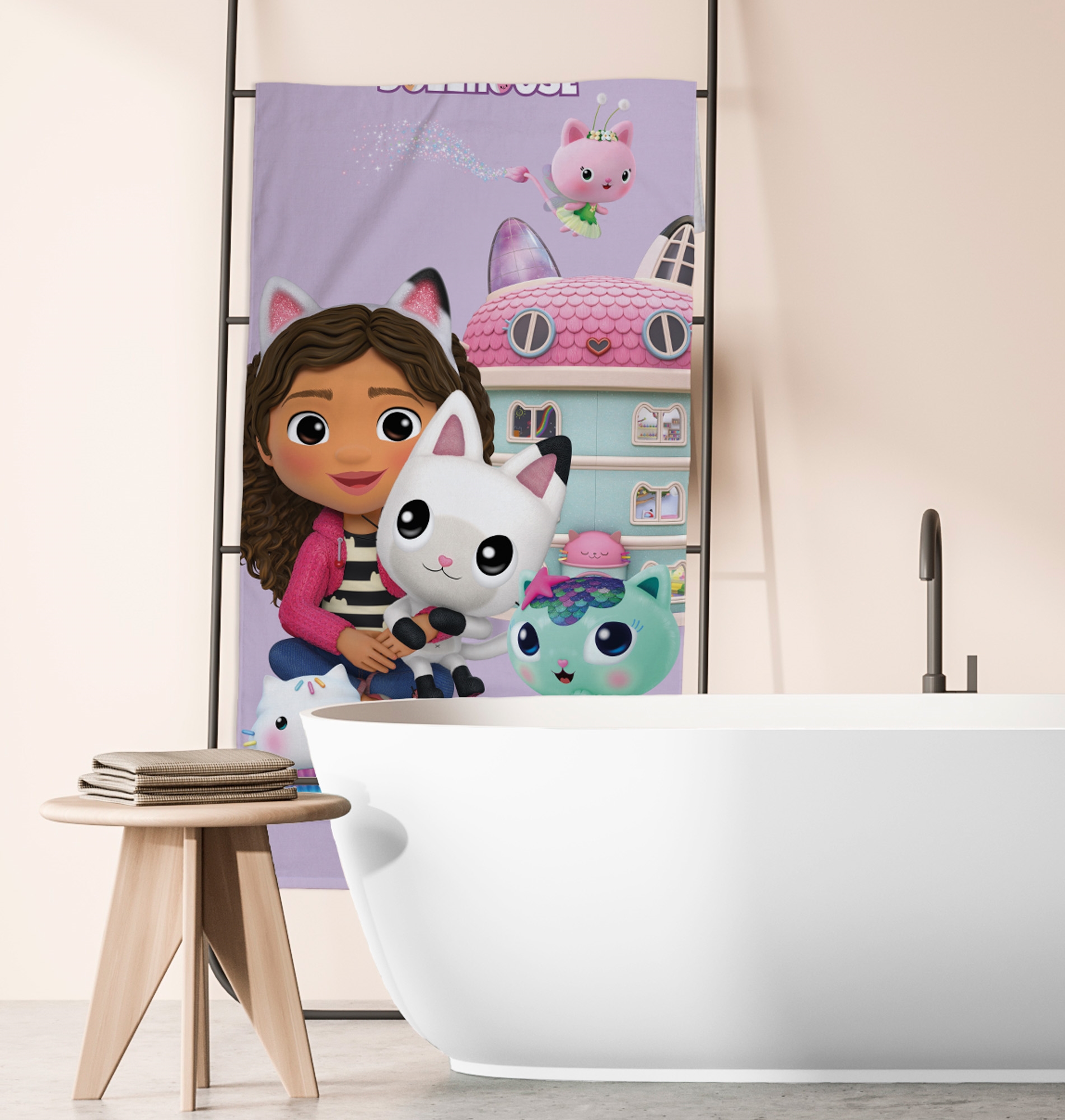 Framsidan »Inredning » Badrumstillbehör » Handduksstorlekar » Badhandduk 70x140 cm Gabby's Dollhouse handduk - 70x140 cm - 100% bomull - Mjuk badhandduk med Gabby, Pandy Paws, Catfish, Cakey Cat, Pillow Cat Spara17% Licens 299,00249,00SEKSpara 50,- I lager Trustpilot Antal Lägg i varukorgen Se mer från: Licens Artikelnummer:21826 Läs vår handduksguide Se vårt utbud av handdukspaket Se vårt utbud av badponchos för barn Har du frågor om produkten? God absorptionMjuk & bekvämOEKO-TEX® - Fri från kemikalier Storlek: 70x140 cm Typ: Badhandduk Design: Gabby's Dollhouse Hängare: Ja, topp Kvalitet: 100% mjuk bomull Tvätt: 40° Torktumling: Ja Certifiering: STANDARD 100 by OEKO-TEX® (2017OK349 AITEX). Din garanti för att produkten är fri från hälsofarliga ämnen. Mjuk badhandduk i 100% bomull, med ett sött motiv av Gabby's Dollhouse. Handdukens söta motiv kommer säkert att få den lilla fanen att le, så badtiden blir roligare. Balansen i naturlig komfort från det mjuka materialet och den mysiga designen gör denna handduk till en säker favorit hos ditt barn. Vi rekommenderar att nya handdukar blötläggs i kallt vatten före första tvätten - på så sätt optimerar du handdukarnas absorptionsförmåga. Denna Gabby's Dollhouse handduk är en enkel uppgradering av den tråkiga badhandduken, samt gör badtiden mer intressant och personlig. Handdukens söta motiv av karaktärerna kommer säkert att väcka entusiasm hos den lilla fanen. Barnhandduken är gjord av 100% bomull, vilket betyder att den är härligt mjuk och bekväm att använda. Bomull är ett naturligt mjukt material som är skonsamt mot huden, dessutom är materialet känt för sin höga absorptionsförmåga. Badhandduken är utrustad med en hängare, vilket gör det enkelt att hänga upp den när den ska torka. Hitta härliga badrockar här Handduken är OEKO-TEX certifierad, vilket betyder att den är testad fri från hälsofarliga kemikalier. Detta är ett tecken på ansvarsfull produktion, som inte bara gynnar miljön, utan också för vår kropp och hud, eftersom det minskar risken för allergiska reaktioner. Hitta allt för badrummet här Tillbaka till Badhandduk 70x140 cm