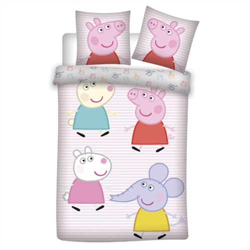 Framsidan »Sängkläder » Sängkläder för barn » Sängkläder för Barn 140x200 cm Gurli Gris sengetøy 140x200 cm - Gurli, Karina, Frida och Emilie sengesett - Vändbart sänglinne i 100% bomull Spara23% Licens 499,00385,00SEKSpara 114,- I lager Trustpilot Antal Lägg i varukorgen Se mer från: Licens Artikelnummer:1586-1 Läs vår sängklädsguide Se vårt stora utbud av lakan Se vårt stora utbud av täcken 140x200 Har du frågor om produkten? Hög andningsförmåga100% mjuk bomullOEKO-TEX® certifierad Påslakan: 140x200 cm Kuddfodral: 60x63 cm Material: 100% mjuk bomull Färg: Ljusrosa Motiv: Gurli Gris och vännerna Design: Vändbar - Framsida med Gurli Gris och vännerna, baksida med mini-motiv Stängning: Påslakan med knappar, kuddfodral med överlapp Tvätt: 60° Torktumling: Ja Tål strykning: Ja Certifiering: STANDARD 100 by OEKO-TEX® (2012PK0016). Din garanti för att produkten är fri från skadlig kemi. Bomullssengesett med design av Gurli Gris och hennes vänner. Producerat med lätta och andningsbara bomullstrådar som ger sengesettet en känsla av mjukhet, vilket gör att täcket känns behagligt för ditt barn att sova med. Balansen mellan naturliga egenskaper och komfort från det mjuka materialet, kombinerat med den söta designen, gör detta set till en säker favorit hos ditt barn. Sängkläder med den lilla, glada och ljusrosa Gurli Gris och tre av hennes bästa vänner, Karina Kanin, Frida Får och Emilie Elefant. Sengesettet är vändbart och har på baksidan ett fint all-over tryck av vännerna. Alla Gurli Gris-fans kommer att njuta av att krypa ner med detta sengesett. Det är alltid en bra idé att använda barnets intressen för att skapa en tryggare och mer spännande sovmiljö för barnet. Sengesettet är tillverkat i 100% mjuk bomull som gör setet slitstarkt och med hög andningsförmåga. Den rena bomullskvaliteten ger ett härligt och mjukt sengesett som bidrar till att främja sovkomforten för barnet. Bomullssängkläder kan tvättas i 60° i tvättmaskin, vilket också hjälper till att hålla en hög hygiennivå. Sängkläderna är dessutom OEKO-TEX certifierade, vilket är din garanti för att setet är fritt från skadlig kemi. Gå på jakt efter favoriterna och mycket mer i vårt stora utbud av tillbehör till barnuniversum För barnet bör sängen vara en trygg plats och alla element ska tillsammans skapa mjuka och härliga omgivningar där barnet kan finna ro. Använd därför gärna barnets intressen för att skapa ett tryggt sovrum för barnet. Hos oss kan du hitta ett stort utbud av tillbehör till sängen och barnrummet, från övermadrasslakan till täcken, kuddar, sängkläder och mycket mer, samt massor av produkter med alla barnens favoriter på. Alla dessa element kan bidra till att skapa rätt sovmiljö och rum för ditt barn. Här kan du hitta fina och mjuka kvalitetslakan Tillbaka till Sängkläder för Barn 140x200 cm