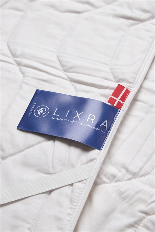Ett mjukt och härligt madrasskydd från det danska varumärket LIXRA, tillverkat av återvunnen bomull. Madrasskyddet är andningsbart, absorberande och tillför något positivt till din säng. Det rekommenderas alltid att använda ett madrasskydd ovanpå din madrass eller bäddmadrass. Ett madrasskydd fungerar som ett skyddande lager på din säng - ett av de viktigaste lagren. Ett madrasskydd är en viktig del av din säng, som skyddar och förlänger livslängden på dina andra lager. På så sätt uppnår du också en högre hygiennivå i sängen eftersom madrasskyddet enkelt kan tas av och tvättas.