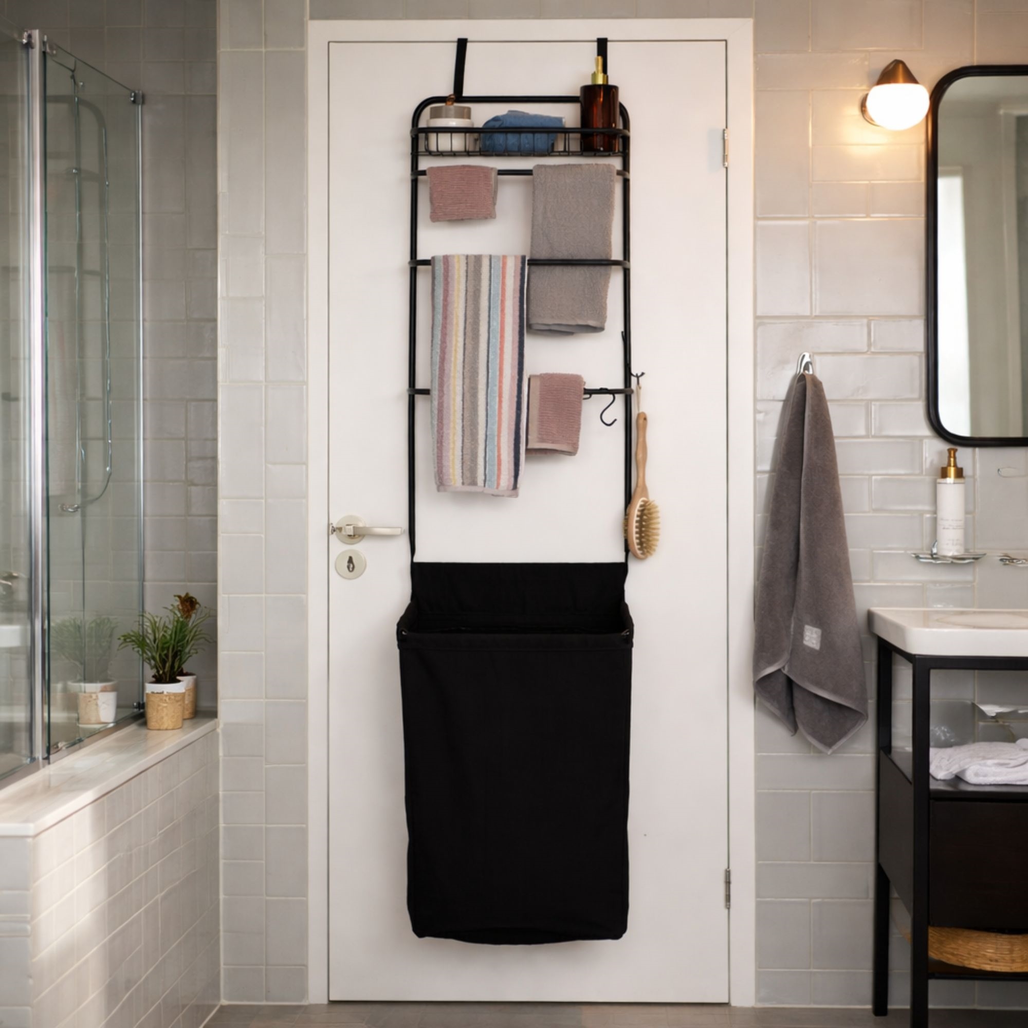Framsidan »Inredning » Badrumstillbehör » Tvättkorg Hängförvaring - Svart metall - Upphängning för dörr med tygkorg - Smart förvaring med integrerad tvättkorg Spara27% Borg Living 549,00399,00SEKSpara 150,- I lager Trustpilot Antal Lägg i varukorgen Se mer från: Borg Living Artikelnummer:SM002 Se vårt utbud av handdukspaket Se vårt utbud av förvaring för badrummet Har du frågor om produkten? Praktisk tygkorg för tvättKombinerad handdukshållare och förvaringElegant och platsbesparande design Allt-i-ett-förvaring för badrummet Typ: Hängförvaring för dörr inkl. tvättkorg Totala mått: 120x30x40 cm Djup på metallkorg: 4,5 cm Tvättkorg mått: 47x27x37 cm Beslagsdjup: 4,5 cm Material: Pulverlackerat stål och kraftigt kanvastyg Färg: Svart Ingår: 2 avtagbara krokar Brand: Borg Living En smart förvaring för upphängning på dörren med en trådkorg högst upp och en tygkorg längst ner. Praktisk förvaringslösning för badrummet, sovrummet eller barnrummet. Den smarta lösningen med två olika korgar har många användningsområden och tar inte mycket plats när den sitter på dörren. Den smarta förvaringen för upphängning på dörren består av en trådkorg, tre torkstänger, två avtagbara krokar att använda på torkstängerna och en tygkorg i botten. Den är enfärgad svart och tillverkad av pulverlackerat stål, samt tygkorgen är gjord av kraftigt kanvastyg och kan enkelt fästas av stativet. Denna kombination gör hela upphängningen mer motståndskraftig mot repor, skador, samt mycket enkel att rengöra. Se vårt stora utbud av hem- och inredningstillbehör Använd ytan på dörren på ett smart sätt för förvaring. Förvaringslösningar är en bra lösning om du behöver kombinera och tänka smart i din förvaring. Denna smarta förvaring är designad för att hängas på dörren utan användning av skruvar eller hål, vilket ger dig möjlighet att effektivt utnyttja ytor som du kanske normalt inte skulle använda. Du får extra förvaringsutrymme utan att behöva ta golvyta, vilket är värdefullt för många till exempel i små rum eller utrymmen. Detta är särskilt praktiskt i mindre rum där ytan är begränsad. Det enkla och stilfulla designen gör att den passar in i alla inredningar. Den svarta färgen är tidlös och elegant, och den minimalistiska designen gör att den passar in i de flesta miljöer. Dessutom är trådkorgen lätt att dekorera till exempel med en ljusslinga, en blomma eller annat som ger ett ombonat avslut. Se alla våra smarta förvaringslösningar via länken här Tillbaka till Tvättkorg