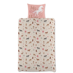 Framsidan »Sängkläder » Sängkläder för barn » Sängkläder för Barn 140x200 cm Häst sengetøy 140x200 cm - Vackert romantiskt hästmotiv - 100% bomullssängset Spara50% Licens 499,00249,00SEKSpara 250,- I lager Trustpilot Antal Lägg i varukorgen Se mer från: Licens Artikelnummer:1834-1 Läs vår sängsetsguide Se vårt stora utbud av lakan Se vårt stora utbud av sommartäcken 140x200 Har du frågor om produkten? Populärt designMjukt och härligt bomullOEKO-TEX® certifierat Påslakan: 140x200 cm Kuddfodral: 60x63 cm Material: 100% mjuk bomull Färg: Ljusrosa Motiv: Häst med blommor och hjärtan Design: Vändbar - Framsida med en häst, baksida med all-over tryck av hästmotiv Stängning: Påslakan med knappar, kuddfodral med överlapp Tvätt: 60° Torktumling: Ja Tål strykning: Ja Certifiering: STANDARD 100 by OEKO-TEX® (11-67789 Shirley). Din garanti för att produkten är fri från skadlig kemi. Mjukt sengetøy med motiv av en häst med blommor och hjärtan. Det fina sängsetet har två sidor att välja mellan tack vare smart vändbart design. Det mjuka sängsetet producerat i 100% bomull är både andningsbart och absorberande, och ger god sovkomfort. Ett slitstarkt bomullssängset för barn som gör barnrummet lite mer spännande. Ett vackert och härligt häst sängset som är vändbart med olika motiv fram och bak. På ena sidan finns motiv av en elegant häst med hjärtan och blommor. Vänder du på sängsetet finns ett fint mönster med hästar. Varje hästälskande flicka eller pojke kommer att älska detta sängset. Sängsetet är tillverkat i 100% mjuk bomull som gör setet slitstarkt och med hög andningsförmåga. Den rena bomullskvaliteten ger ett härligt och mjukt sängset som bidrar till god sovkomfort för barnet. Bomullssengetøy kan tvättas i 60° i tvättmaskin, vilket också hjälper till att hålla en hög hygiennivå. Sängsetet är dessutom OEKO-TEX certifierat, vilket är din garanti för att setet är fritt från skadlig kemi. Utforska favoriter och mycket mer i vårt stora utbud av tillbehör till barnens universum För barnet bör sängen vara en trygg plats och alla element ska tillsammans skapa mjuka och härliga omgivningar där barnet kan finna ro. Använd gärna barnets intressen för att skapa ett tryggt sovrum för barnet. Hos oss hittar du ett stort utbud av tillbehör till sängen och barnrummet, från övermadrasslakan till sommartäcken, kuddar, sengetøy av flanell och mycket mer, samt massor av produkter med alla barnens favoriter. Alla dessa element kan bidra till att skapa rätt sovmiljö och rum för ditt barn. Här hittar du fina och mjuka kvalitetslakan Tillbaka till Sängkläder för Barn 140x200 cm