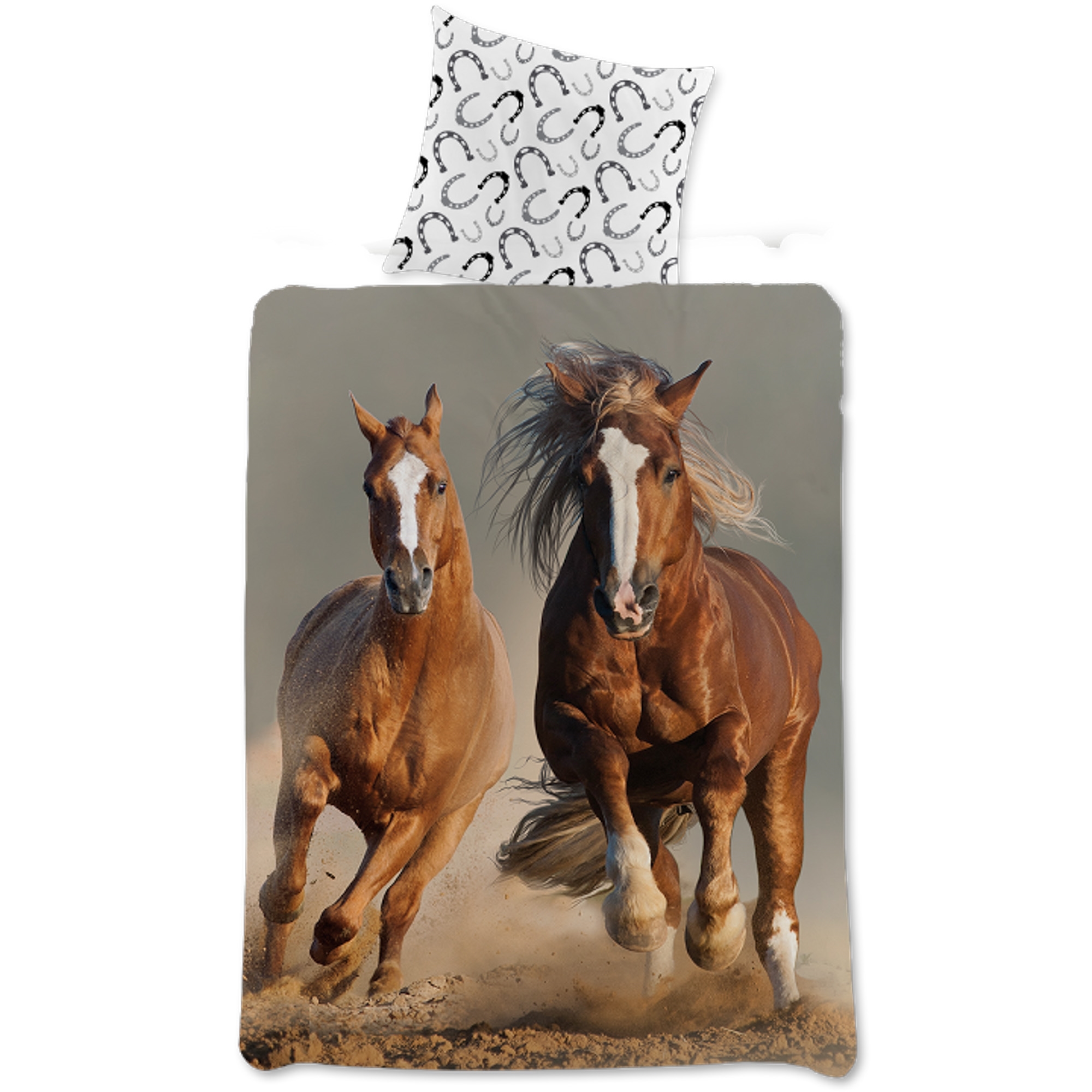 Framsidan »Sängkläder » Sängkläder för barn » Sängkläder för Barn 140x200 cm Hästsengetøy 140x200 cm - Vackra Galopperande hästar - 100% bomullssängset Spara50% Licens 499,00249,00SEKSpara 250,- I lager Trustpilot Antal Lägg i varukorgen Se mer från: Licens Artikelnummer:1582-1 Läs vår sängklädsguide Se vårt stora utbud av lakan Se vårt stora utbud av täcken 140x200 Har du frågor om produkten? Hög andningsförmågaMjukt och härligt bomullOEKO-TEX® certifierad Påslakan: 140x200 cm Kuddfodral: 60x63 cm Material: 100% mjuk bomull Färg: Bruna och grå Motiv: Hästar Design: Vändbar - Framsida med 2 bruna hästar, baksida med all-over tryck av hästsko Stängning: Påslakan med knappar, kuddfodral med överlapp Tvätt: 60° Torktumling: Ja Tål strykning: Ja Certifiering: STANDARD 100 by OEKO-TEX®. Din garanti för att produkten är fri från skadlig kemi. Sängset i 100% mjuk bomull, med galopperande hästar. Med lätta och andningsbara bomullstrådar ger detta sängset en mjuk yta som gör täcket behagligt för barnet att sova med. Ett slitstarkt sängset med hög andningsförmåga och absorberingsförmåga som hjälper till att göra sovstunden till en trevlig upplevelse. Ett vackert hästsängset. Sängsetet är vändbart med olika motiv fram och bak. På framsidan finns motiv av 2 eleganta, springande hästar och på baksidan finns ett all-over tryck av hästsko. Varje hästälskande flicka eller pojke kommer att älska detta sängset. Det är alltid en bra idé att använda barnets intressen för att skapa en tryggare och mer spännande sovmiljö för sitt barn. Sängsetet är tillverkat i 100% mjuk bomull som gör setet slitstarkt och med hög andningsförmåga. Den rena bomullskvaliteten ger ett härligt och mjukt sängset som bidrar till att främja sovkomforten för barnet. Bomullssängkläder kan tvättas i 60° i tvättmaskin, vilket också bidrar till att hålla en hög hygiennivå. Sängkläderna är dessutom tillverkade med OEKO-TEX certifiering, vilket är din garanti för att setet är fritt från skadlig kemi. Gå på jakt efter favoriterna och mycket mer i vårt stora utbud av tillbehör till barnuniversum För barnet bör sängen vara en trygg plats och alla element ska tillsammans skapa mjuka och härliga omgivningar för barnet att finna ro i. Använd därför gärna barnets intressen för att skapa ett tryggt sovrum för barnet. Hos oss kan du hitta ett stort utbud av tillbehör till sängen och barnrummet, från övermadrasslakan till täcken, kuddar, sängkläder och mycket mer, och massor av produkter med alla barnens favoriter på. Allt detta är element som kan bidra till att skapa rätt sovmiljö och rum för ditt barn. Här kan du hitta fina och mjuka kvalitetslakan Tillbaka till Sängkläder för Barn 140x200 cm