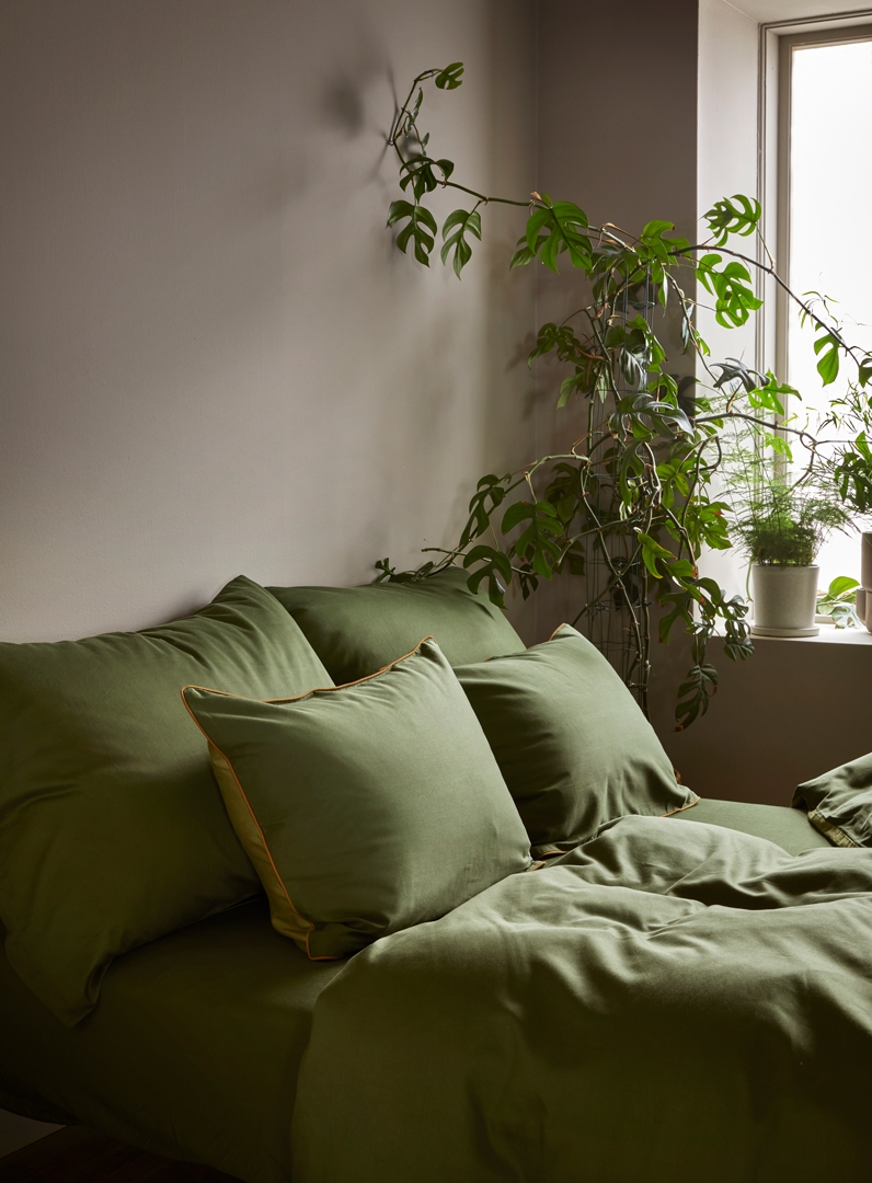 Framsidan »Sängkläder » Dubbelt påslakanset » Dubbelt påslakanset 200x220 cm Høie sängkläder dubbeltäcke - 100% mjuk bomullssatin - 200x220 cm - Grönt Oslo bäddset från Høie of Scandinavia 2 x kuddfodralSpara32% Høie Of Scandinavia 2.199,001.499,00SEKSpara 700,- Fri frakt på denna varaFåtal i lager Trustpilot Antal Lägg i varukorgen Se mer från: Høie Of Scandinavia Artikelnummer:6924-5 Läs vår sängkläderguide Se vårt stora utbud av lakan Se vårt stora utbud av täcken 200x220 Har du frågor om produkten? Bomullssatin - Extra mjukt och glänsandeVändbar med exklusiv passpoalkantEASY CARE-behandlad Påslakan: 200x220 cm Kuddfodral: 2 st. á 60x63 cm Material: 100% bomullssatin Vävning: Extra fin 220TC (Trådantal = antal trådar per kvadrattum) Färg: Vändbar - Mörkgrön och olivfärgad Design: Oslo grön Varumärke: Høie of Scandinavia Stängning: Påslakan med dragkedja, kuddfodral med överlapp Tvätt: 60° Torktumling: Ja Kan strykas: Ja Certifiering: STANDARD 100 by OEKO-TEX® (M24LHAKE9 HOHENSTEIN HTTI) Certifiering: EASY CARE-behandlad, vilket innebär att den inte skrynklas efter tvätt Detta bäddset från Høie of Scandinavia är tillverkat av 100% bomullssatin i bästa kvalitet. De långfibriga bomullstrådarna i kombination med vävtekniken ger sängkläderna optimal glans och hög slitstyrka - och framförallt en elegant och mjuk uppsättning sängkläder. Och med denna design får du ett exklusivt vändbart set med två olika gröna nyanser och snygg passpoalkant runt hela bäddsetet. Sängkläderna från Høie är EASY CARE-behandlade, för mindre veck och bättre form efter tvätt. Easy Care gör dina sängkläder extra bekväma och lätta att stryka. Påslakan stängs med dragkedja och kuddfodral med överlapp. Beställ enkelt kuddfodral till dina extra kuddar här Høie är ett skandinaviskt varumärke som förenar tradition med innovation. Företaget har funnits sedan 1850 och har genom åren varit med och format och utvecklat skandinaviska textilier och design. Sängkläder från Høie är vardagslyx som alla förtjänar. Fräscha upp din säng och ditt sovrum med en snygg och härlig uppsättning sängkläder som dessa. Dra nytta av möjligheten att säkerställa maximal sovkomfort genom att komplettera med ett nytt mjukt lakan av hög kvalitet. Du hittar vårt stora utbud av lakan här Tillbaka till Dubbelt påslakanset 200x220 cm