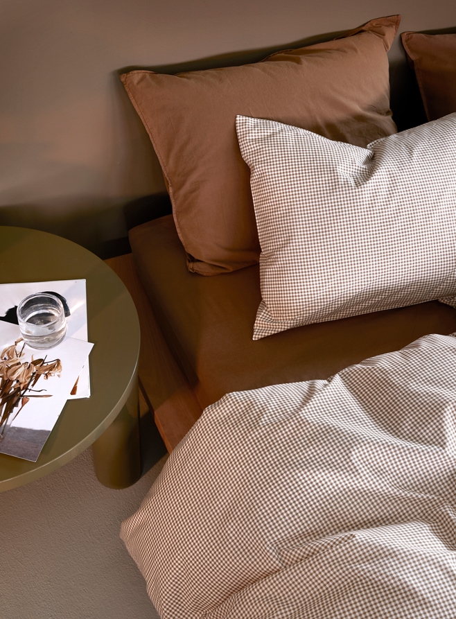 Framsidan »Sängkläder » Enkelt påslakanset » Enkelt påslakanset 140x200 cm Høie sängkläder - Extra fin bomull - 140x200 cm - Frans set med bruna rutor Høie of Scandinavia Spara40% Høie Of Scandinavia 769,00459,00SEKSpara 310,- I lager Trustpilot Antal Lägg i varukorgen Se mer från: Høie Of Scandinavia Artikelnummer:7653-1 Läs vår guide till sängkläder Se vårt stora utbud av lakan Se vårt stora utbud av täcken 140x200 Har du frågor om produkten? Mjuk och glansigExtra fin bomullEASY CARE-behandlad Påslakan: 140x200 cm Kuddfodral: 1 st. á 60x63 cm Material: 100% extra fin bomull Vävning: Extra fin 220TC (Trådantal = antal trådar per kvadrattum) Färg: Brun\/Kanel Design: Frans - Rutig Varumärke: Høie of Scandinavia Stängning: Påslakan med dragkedja, kuddfodral med överlapp Tvätt: 60° Torktumling: Ja Kan strykas: Ja Certifiering: STANDARD 100 by OEKO-TEX® (M27M5W5V2 TESTEX) Certifiering: EASY CARE-behandlad, vilket innebär att den inte skrynklas efter tvätt Detta bäddset från Høie of Scandinavia är i 100% extra fin bomull. Den extra fina bomullen är känd för sin renhet och stora slitstyrka. Bäddsetet är inte bara mjukt och behagligt, utan också otroligt slitstarkt, lätt och snabbtorkande. Dessa vackra och eleganta sängkläder är tillverkade med hög färgbeständighet. Sängkläderna är OEKO-TEX certifierade, detta garanterar att de har testats och är fria från skadliga ämnen och kemikalier. Sängkläderna från Høie är även EASY CARE-behandlade, för mindre veck och bättre form efter tvätt. Easy Care gör dina sängkläder extra bekväma och lätta att stryka. Köp lätt kuddfodral till dina extra kuddar här Fräscha upp sängen och sovrummet med en snygg och härlig uppsättning sängkläder som dessa. Dra samtidigt nytta av möjligheten att tillföra maximal sovkomfort genom att lägga till ett nytt kvalitetslakan. Du hittar vårt stora sortiment av lakan här Høie är ett skandinaviskt varumärke som kombinerar tradition med innovation. Företaget har funnits sedan 1850 och har genom åren varit med och format och utvecklat skandinaviska textilier och design. Sängkläder från Høie är vardagslyx som alla förtjänar. Tillbaka till Enkelt påslakanset 140x200 cm