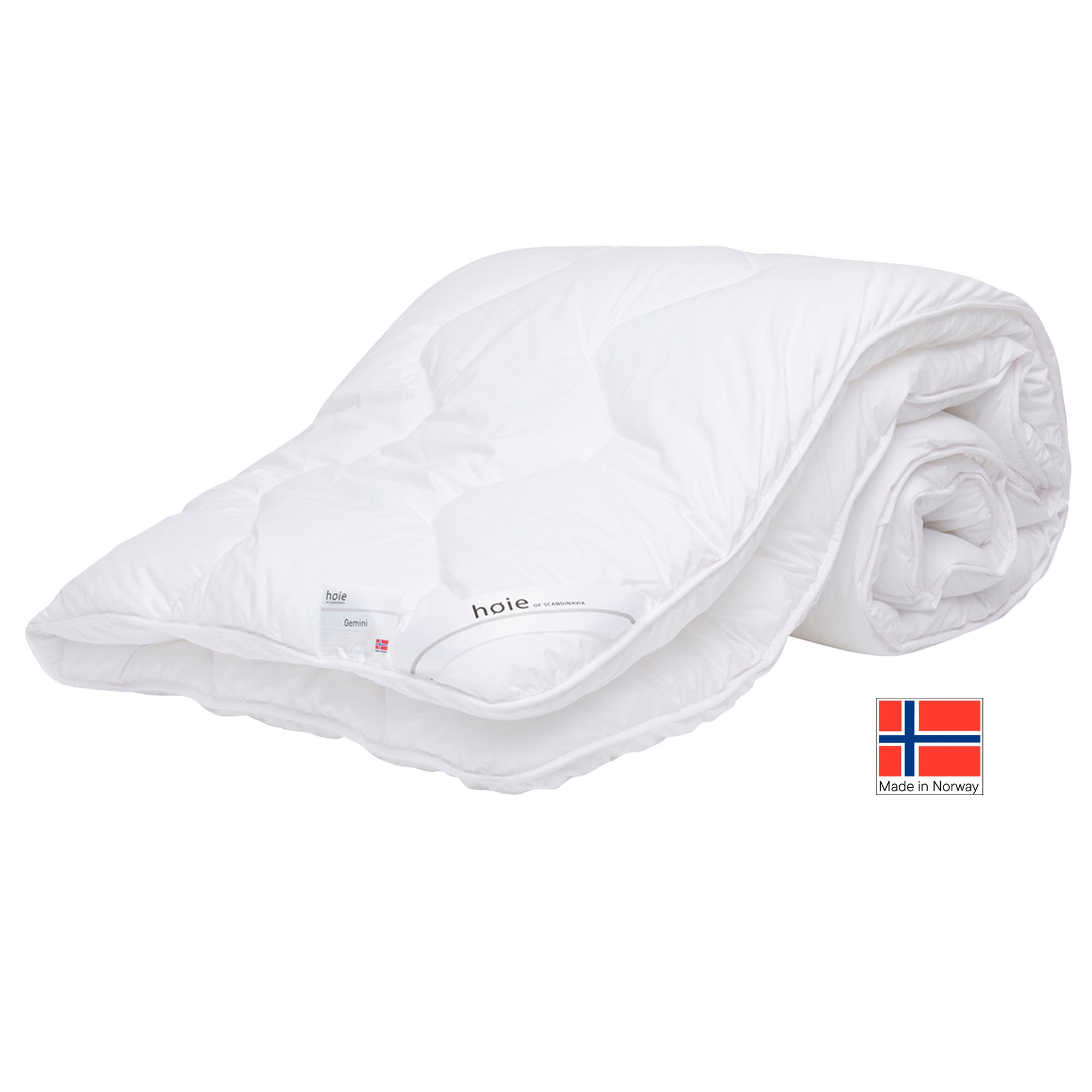 Høie Gemini täcket är en härlig vintertäcke med extra längd, med hög isoleringsförmåga - en mjuk och luftig vintertäcke av hög Norsk kvalitet. Gemini täcket är tillverkat av extra mjuka hålfibrer, som både säkerställer täckets lätthet och luftighet, samt ger en riktigt fyllig täcke. Dessa fibrer är inte bara luftiga, de är också starka, vilket gör att det varma täcket kommer att behålla sin fyllighet vid användning. Denna modell är ett täcke konstruerat av två lager täcken på varje 550 g, sammansatt för att ge täckets luftutrymme i mellan, även känt som termo. Denna termoeffekt kommer som skrivet, från det luftutrymme som skapas mellan de två lagren, vilket gör att täcket isolerar och distribuerar värmen optimalt, utan köldbryggor genom hela vintertäckets längd och bredd.