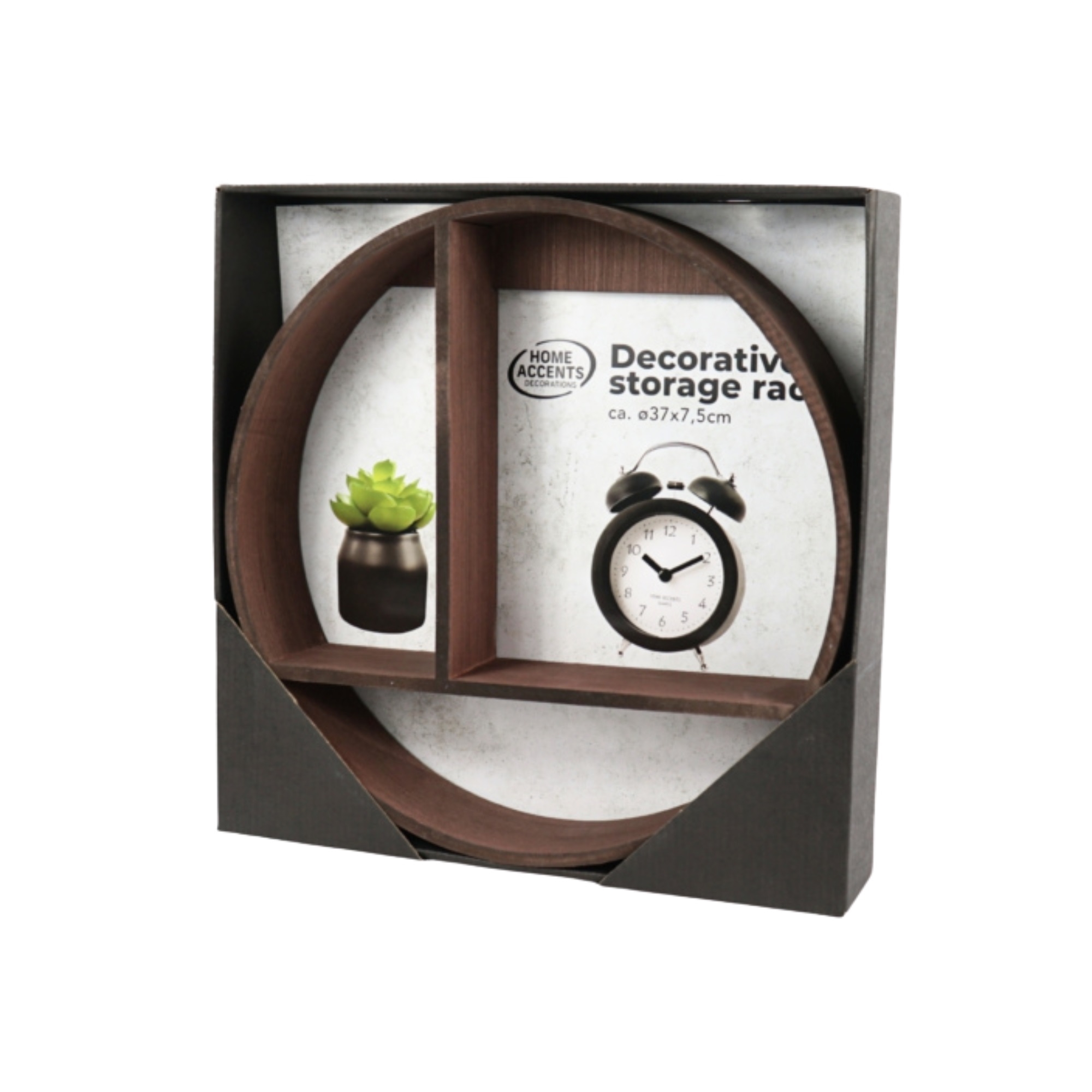 Framsidan »Inredning » Dekorationer » Hyllor Hylla - Rund vägghylla Ø37 cm - Mörkbrunt trä Spara60% HOME-TEX 499,00199,00SEKSpara 300,- I lager Trustpilot Antal Lägg i varukorgen Se mer från: HOME-TEX Artikelnummer:ME0966-M Har du frågor om produkten? Elegant rund vägghylla i modern designIdeal för växter, bilder och små dekorationerTillverkad i trä från ansvarsfullt skogsbruk Typ: Hylla Material: Trä Mått: Ø37x7,5 cm Färg: Mörkbrun Certifiering: FSC (C117418). Din garanti för att träet är producerat med respekt för naturen och under kontrollerade förhållanden. Rund vägghylla i mörkbrunt trä - Ø37 cm Skapa ett stilfullt och personligt uttryck i ditt hem med denna runda vägghylla i trä. Med sitt moderna och dekorativa formspråk är hyllan både praktisk och vacker - perfekt för att framhäva dina favoritföremål. Hyllan är tillverkad i vackert mörkbrunt trä som ger värme åt inredningen. Den runda formen i kombination med de indelade facken ger ett nordiskt och modernt uttryck som passar perfekt i både vardagsrum, sovrum, hall eller i köket. Med en storlek på Ø37 cm och ett djup på 7,5 cm är hyllan idealisk för små dekorationer, växter, bilder eller andra personliga element som förtjänar en fin plats på väggen. Hyllan är FSC-certifierad, vilket innebär att träet kommer från hållbart skogsbruk - ett ansvarsfullt val för både dig och miljön. Denna vägghylla är inte bara praktisk för förvaring, utan också en dekorativ detalj som skapar liv och personlighet i rummet. Perfekt för dig som vill kombinera funktionalitet med modern heminredning. Se allt för heminredningen här. Tillbaka till Hyllor