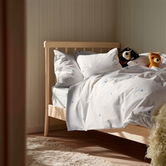 Framsidan »Sängkläder » Sängkläder för barn » Junior sengetøy 100x140 cm JUNA bäddset - 100% ekologisk bomull - Daisy juniorbäddset 100x140 cm - Vit med broderade blommor JUNA Bra pris:749,00SEK Fåtal i lager Trustpilot Antal Lägg i varukorgen Se mer från: JUNA Artikelnummer:607401-8 Läs vår guide till bäddtextilier Se vårt stora utbud av lakan Se vårt stora utbud av täcken 100x140 Har du frågor om produkten? Andningsbart material som säkerställer god komfortBäddsetet är perfekt för barn med känslig hudSlitstark kvalitet som håller sig fin tvätt efter tvätt Påslakan: 100x140 cm - juniorsängset Örngott: 40x45 cm Material: 100% ekologisk bomull Färg: Vit Design: Broderade blå blommor Serie: Daisy Varumärke: Rosendahl - JUNA Stängning: Påslakan och örngott med dragkedja Tvätt: 60° Torktumling: Ja Tål strykning: Ja Certifiering: STANDARD 100 by OEKO-TEX®. Din garanti för att produkten är fri från hälsofarlig kemi. Certifiering: GOTS-certifierad (GOTS Organic Certified by CU1026087). Din garanti för ekologisk textilproduktion med fokus på miljö, ansvarstagande och frihet från skadlig kemi genom hela produktionsprocessen. Juniorbäddset 100x140 cm - Daisy från JUNA Skapa en trygg och drömmande nattsömn med detta vackra juniorbäddset från JUNA Daisy-serien. Den klassiska vita designen med broderade blå blommor ger ett tidlöst och lugnt uttryck. Bäddsetet är tillverkat i 100% ekologisk bomull i en exklusiv percalevävning, som säkerställer en mjuk, slät och andningsbar kvalitet. Den fina percalevävningen ger en lätt och behaglig textur, samtidigt som materialet är slitstarkt och håller sig fint tvätt efter tvätt. De små broderade blommorna skapar ett mysigt och lekfullt uttryck som passar perfekt i både moderna och klassiska barnrum. Bäddsetet är både GOTS-certifierat och OEKO-TEX®-certifierat, vilket säkerställer att det tillverkas med fokus på miljö, ansvar och utan skadliga kemikalier. Se allt juniorbäddset här JUNA - Rosendahl JUNA är en del av Rosendahl Design Group och representerar hemtextilier med fokus på både estetik, kvalitet och ansvarsfull produktion. Varumärket kombinerar klassisk skandinavisk design med nutida trender och skapar textilier som tillför personlighet och värme i hemmet. JUNA är särskilt känt för sitt färgrika och lekfulla universum, där mönster, ränder och grafiska uttryck går hand i hand med mjuka material och hög komfort. Med ett starkt fokus på miljön använder JUNA certifierade material och ansvarsfulla produktionsmetoder, så att du kan välja textilier med eftertanke. Se hela utbudet från Juna här Tillbaka till Junior sengetøy 100x140 cm