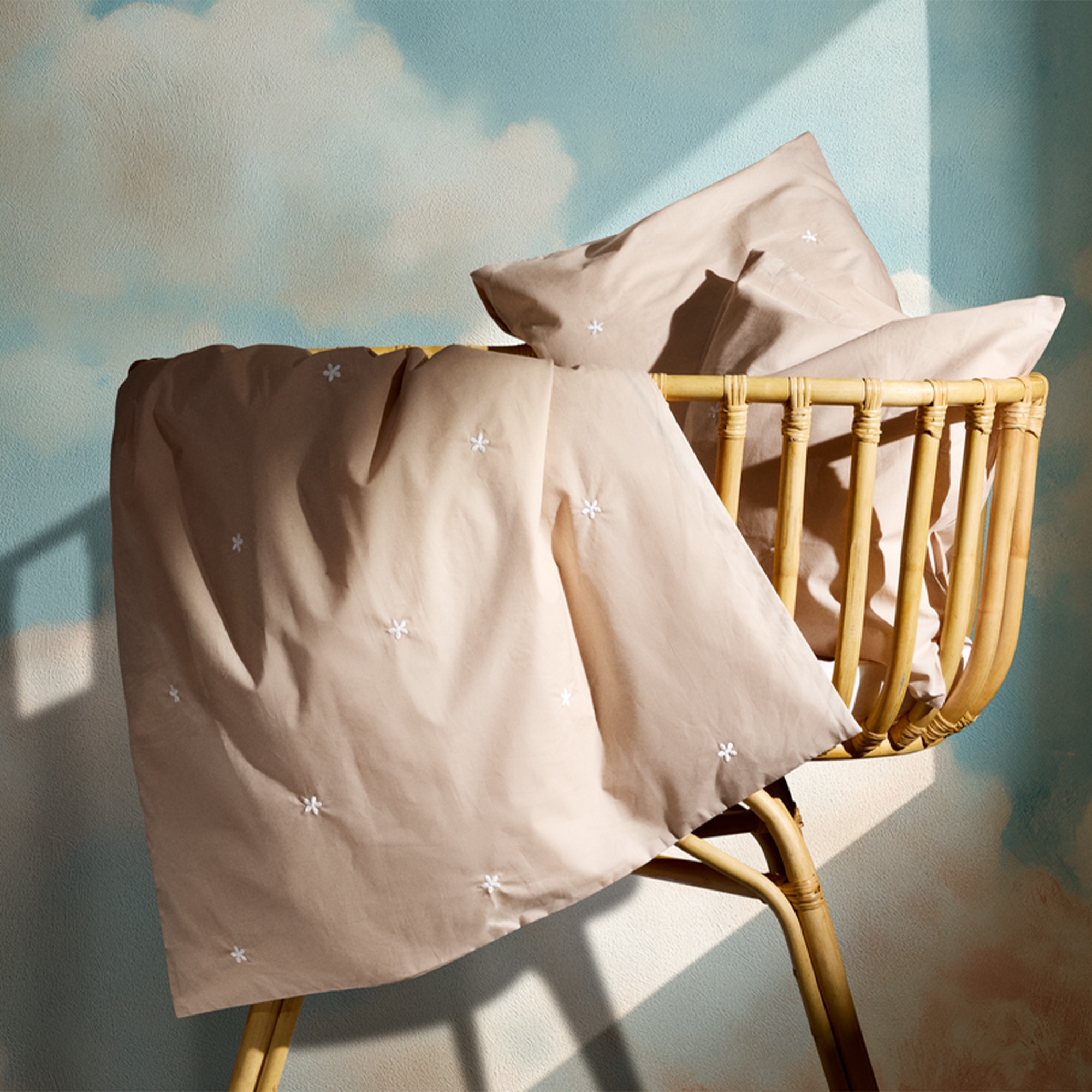 Framsidan »Sängkläder » Sängkläder för barn » Sängkläder för baby 70x100 cm JUNA bäddset - 100% ekologisk bomull - Daisy babybäddset 70x100 cm - Sand med broderade blommor JUNA Bra pris:599,00SEK Fåtal i lager Trustpilot Antal Lägg i varukorgen Se mer från: JUNA Artikelnummer:607404-7 Läs vår sängklädsguide Se vårt stora utbud av lakan Se vårt stora utbud av täcken 70x100 Har du frågor om produkten? Andningsbart material som ger god komfortBäddsetet är perfekt för barn med känslig hudSlitstark kvalitet som håller sig fin tvätt efter tvätt Påslakan: 70x100 cm - babybäddset Örngott: 40x45 cm Material: 100% ekologisk bomull Färg: Sand Design: Broderade vita blommor Serie: Daisy Märke: Rosendahl - JUNA Stängning: Påslakan och örngott med dragkedja Tvätt: 60° Torktumling: Ja Tål strykning: Ja Certifiering: STANDARD 100 by OEKO-TEX®. Din garanti för att produkten är fri från hälsofarliga kemikalier. Certifiering: GOTS-certifierad (GOTS Organic Certified by CU1026087). Din garanti för ekologisk textilproduktion med fokus på miljö, ansvarstagande och frihet från skadliga kemikalier genom hela produktionsprocessen. Babybäddset 70x100 cm - Daisy från JUNA Skapa en trygg nattsömn med detta vackra babybäddset från JUNA Daisy-serien. Den klassiska sandfärgade designen med broderade vita blommor ger ett tidlöst och lugnt uttryck. Bäddsetet är tillverkat i 100% ekologisk bomull i en exklusiv percaleväv, som säkerställer en mjuk, slät och andningsbar kvalitet - perfekt för babyns känsliga hud. Den fina percaleväven ger en lätt och behaglig textur, samtidigt som materialet är slitstarkt och håller sig fint tvätt efter tvätt. De små broderade blommorna skapar ett ombonat och rofyllt uttryck som passar perfekt i alla babyrum. Bäddsetet är både GOTS-certifierat och OEKO-TEX®-certifierat, vilket säkerställer att det är tillverkat med fokus på miljö, ansvarstagande och utan skadliga kemikalier - ett tryggt val för de minsta. Se allt babybäddset här JUNA - Rosendahl JUNA är en del av Rosendahl Design Group och representerar hemtextilier med fokus på både estetik, kvalitet och ansvarsfull produktion. Märket kombinerar klassisk skandinavisk design med nutida trender och skapar textilier som ger personlighet och värme åt hemmet. JUNA är särskilt känt för sitt färgstarka och lekfulla universum, där mönster, ränder och grafiska uttryck går hand i hand med mjuka material och hög komfort. Med ett starkt fokus på miljön använder JUNA certifierade material och ansvarsfulla produktionsmetoder, så att du kan välja textiler med omtanke. Se hela utbudet från Juna här Tillbaka till Sängkläder för baby 70x100 cm