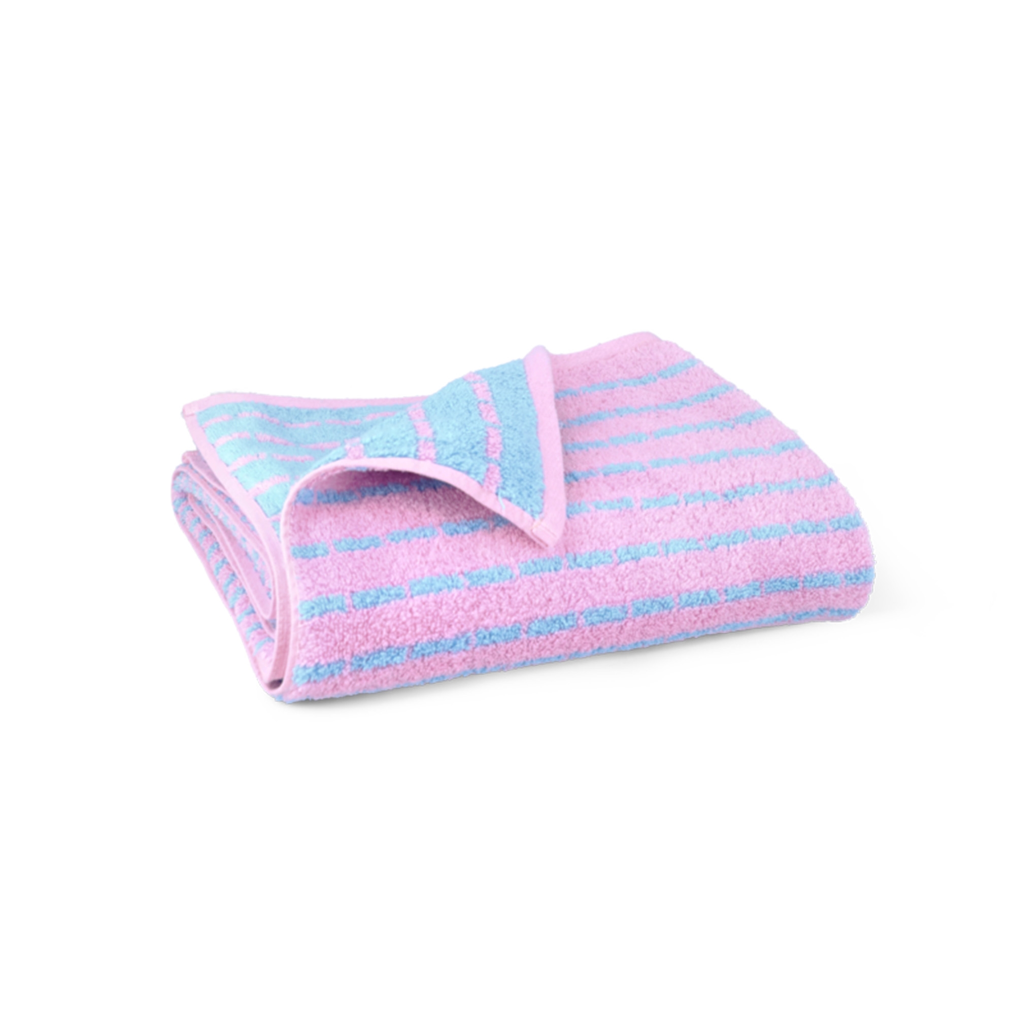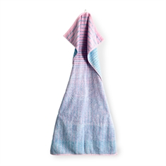 Den fina vävningen kombinerad med det eleganta mönstret i blå/rosa skapar ett stilrent och lugnt uttryck som passar in i alla moderna badrum. Handduken är inte bara vacker att se på utan har också hög absorptionsförmåga och snabb torkning, så du alltid har en fräsch handduk till hands.