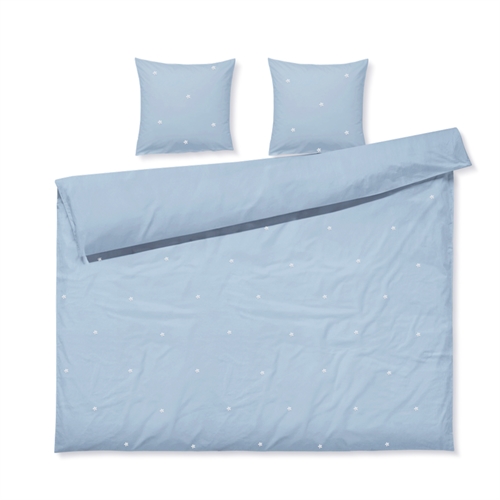 Daisy dubbelpåslakanset i ekologisk bomull - blå med broderade blommor