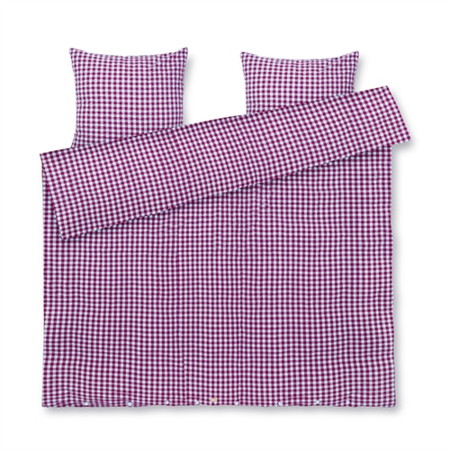 Den mjuka bomullen i kombination med den skrynkliga strukturen ger en unik känsla av lyx. Samtidigt är sängkläderna praktiska i vardagen, eftersom de inte kräver strykning och behåller sitt fina uttryck tvätt efter tvätt. De fina rutorna i lila ger ett lugnt och stilrent intryck som passar både moderna och klassiska sovrum.