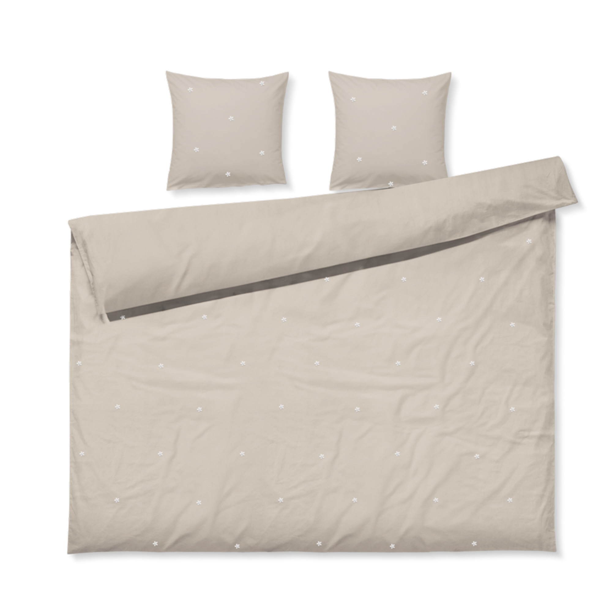 Daisy dubbelt påslakanset i ekologisk bomull - sand med broderade blommor