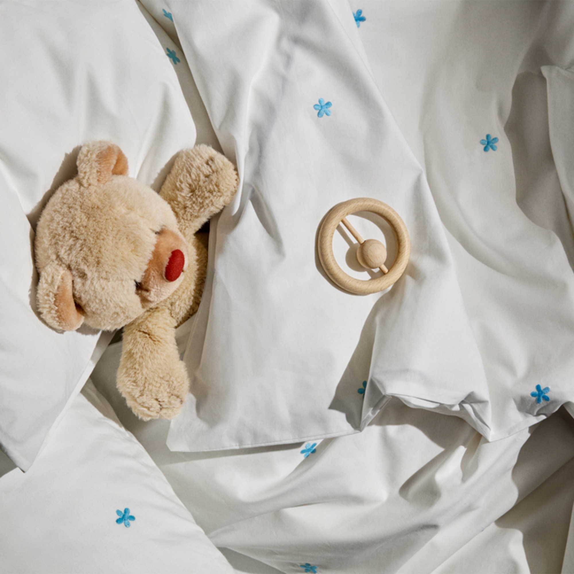 Framsidan »Sängkläder » Sängkläder för barn » Sängkläder för baby 70x100 cm JUNA sängkläder - 100% ekologisk bomull - Daisy baby sängkläder 70x100 cm - Vitt med broderade blommor JUNA Bra pris:599,00SEK Fåtal i lager Trustpilot Antal Lägg i varukorgen Se mer från: JUNA Artikelnummer:607401-7 Läs vår sängklädsguide Se vårt stora utbud av lakan Se vårt stora utbud av täcken 70x100 Har du frågor om produkten? Andningsbart material som säkerställer god komfortSängkläderna är perfekta för barn med känslig hudSlitstark kvalitet som håller sig fin tvätt efter tvätt Påslakan: 70x100 cm - babysängset Örngott: 40x45 cm Material: 100% ekologisk bomull Färg: Vitt Design: Broderade blå blommor Serie: Daisy Märke: Rosendahl - JUNA Stängning: Påslakan och örngott med dragkedja Tvätt: 60° Torktumling: Ja Tål strykning: Ja Certifiering: STANDARD 100 by OEKO-TEX®. Din garanti för att produkten är fri från hälsofarlig kemi. Certifiering: GOTS-certifierad (GOTS Organic Certified by CU1026087). Din garanti för ekologisk textilproduktion med fokus på miljö, ansvarstagande och frihet från skadliga kemikalier genom hela produktionsprocessen. Babysängkläder 70x100 cm - Daisy från JUNA Skapa en trygg nattsömn med detta vackra babysängkläder från JUNA Daisy-serien. Den klassiska vita designen med broderade blå blommor ger ett tidlöst och lugnt uttryck. Sängsetet är tillverkat i 100% ekologisk bomull i en exklusiv percalevävning, som säkerställer en mjuk, slät och andningsbar kvalitet - perfekt för babys känsliga hud. Den fina percalevävningen ger en lätt och behaglig textur, samtidigt som materialet är slitstarkt och håller sig fint tvätt efter tvätt. De små broderade blommorna skapar ett mysigt och lugnt uttryck som passar perfekt i varje barnrum. Sängkläderna är både GOTS-certifierade och OEKO-TEX®-certifierade, vilket säkerställer att de är tillverkade med fokus på miljö, ansvarstagande och utan skadliga kemikalier - ett tryggt val för de allra minsta. Se alla babysängkläder här JUNA - Rosendahl JUNA är en del av Rosendahl Design Group och representerar hemtextilier med fokus på både estetik, kvalitet och ansvarsfull produktion. Varumärket kombinerar klassisk skandinavisk design med nutida trender och skapar textilier som tillför personlighet och värme i hemmet. JUNA är särskilt känt för sitt färggranna och lekfulla universum, där mönster, ränder och grafiska uttryck går hand i hand med mjuka material och hög komfort. Med ett starkt fokus på miljön använder JUNA certifierade material och ansvarsfulla produktionsmetoder, så att du kan välja textilier med eftertanke. Se hela utbudet från Juna här Tillbaka till Sängkläder för baby 70x100 cm