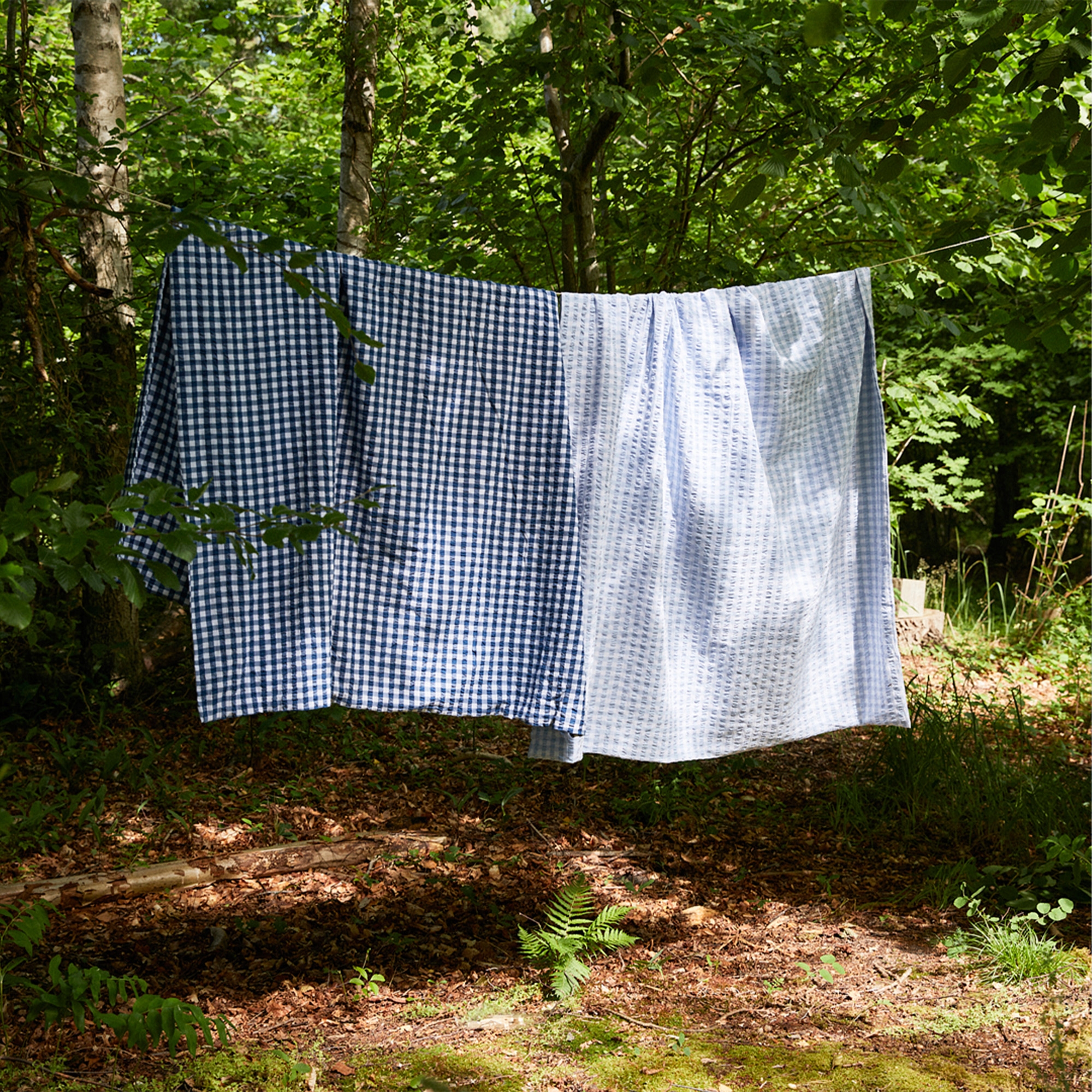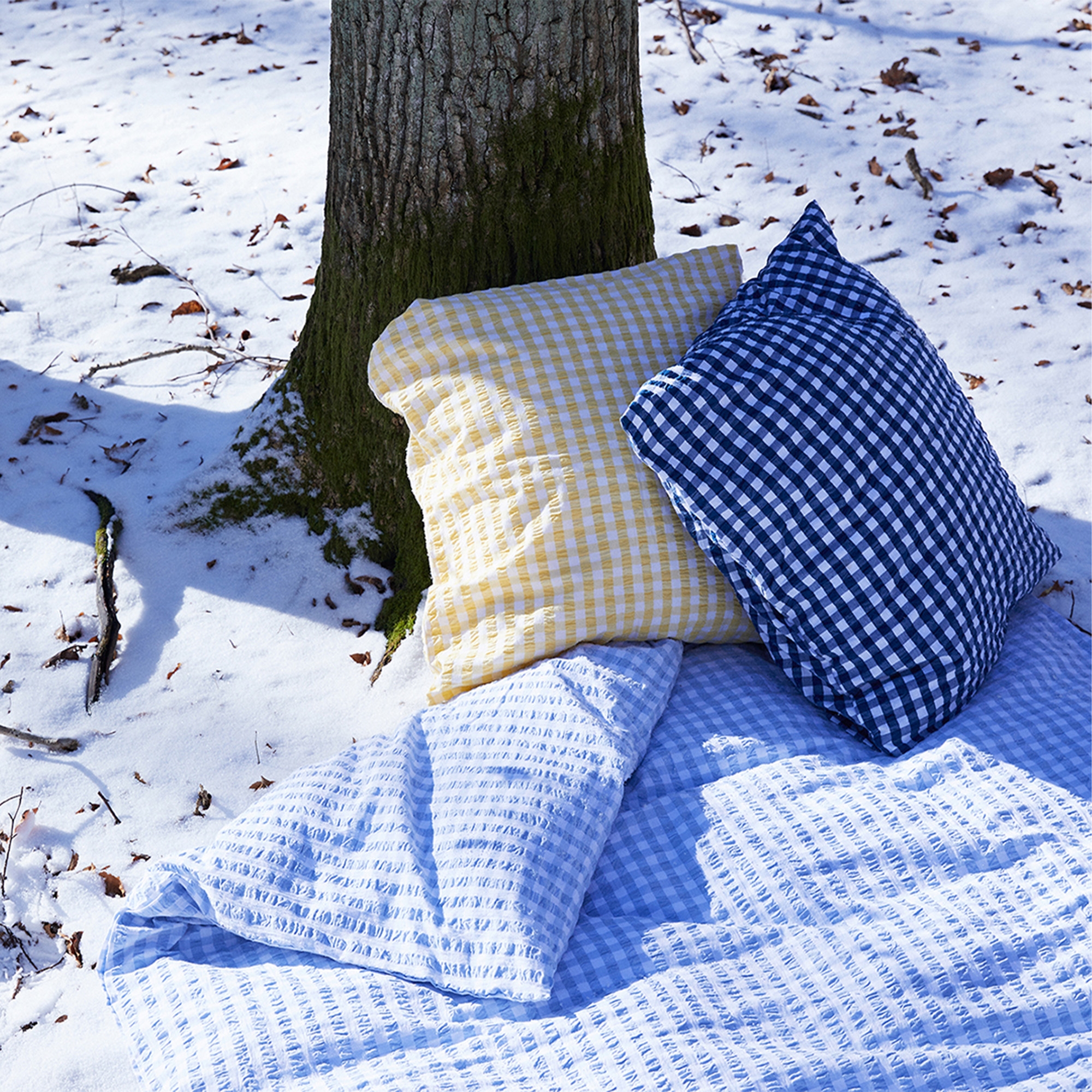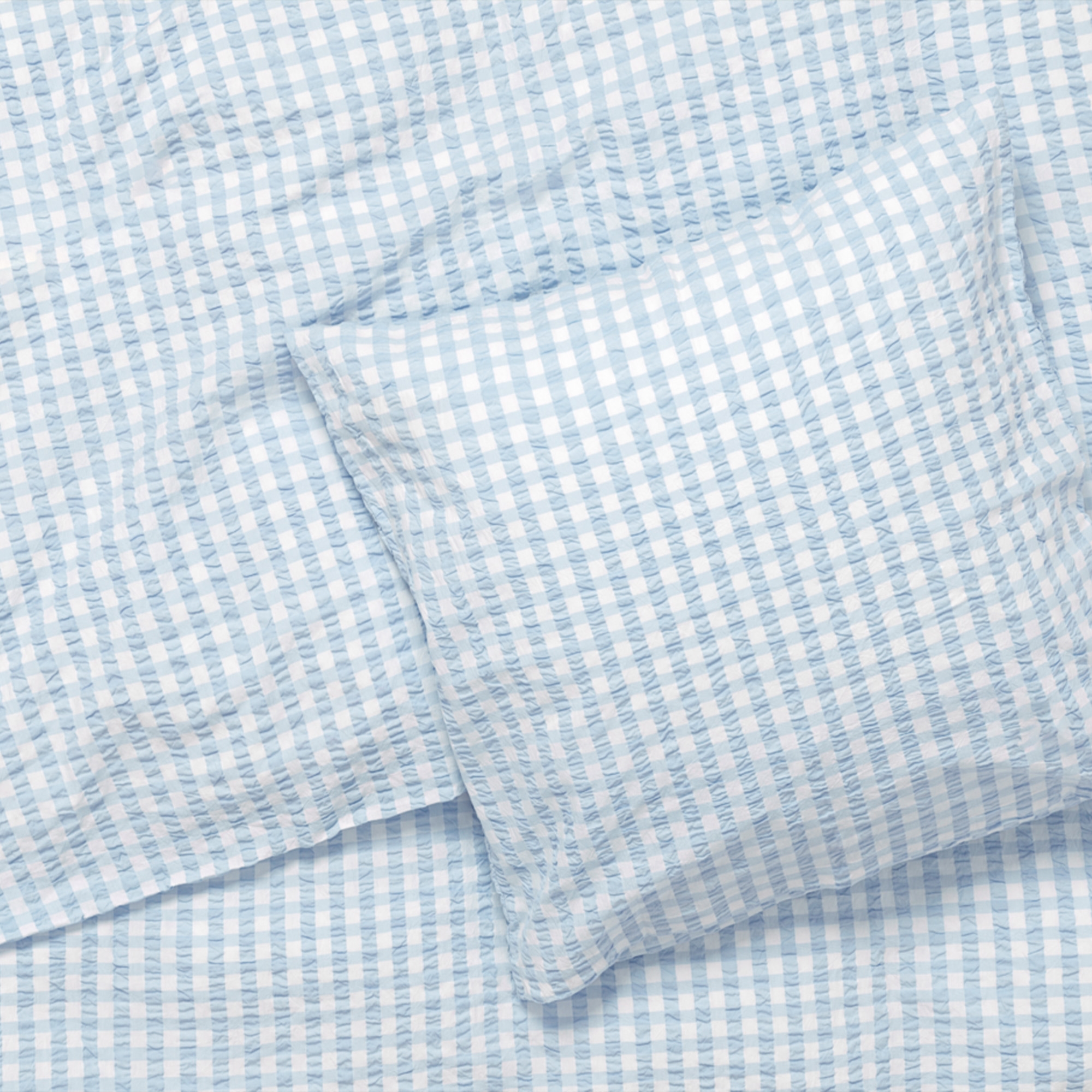 Den mjuka bomullen kombinerad med den krinklade strukturen ger en unik känsla av lyx. Samtidigt är sängkläderna praktiska i vardagen då de inte kräver strykning och behåller sitt fina uttryck tvätt efter tvätt. De fina rutorna i ljusblå ger ett lugnt och stilrent uttryck som passar både moderna och klassiska sovrum.