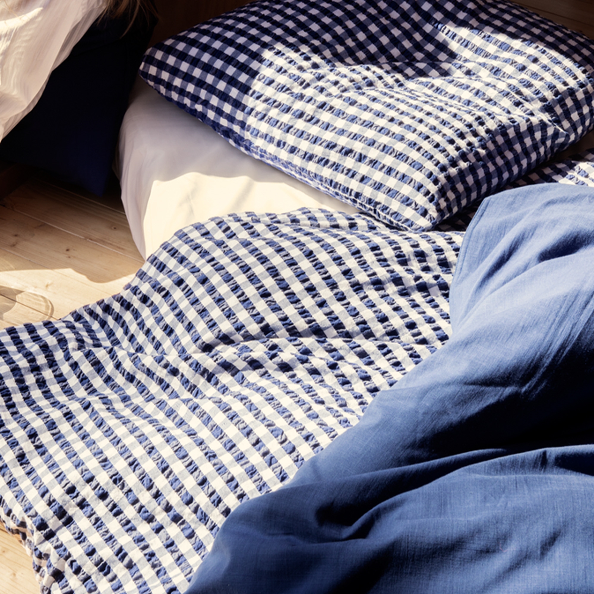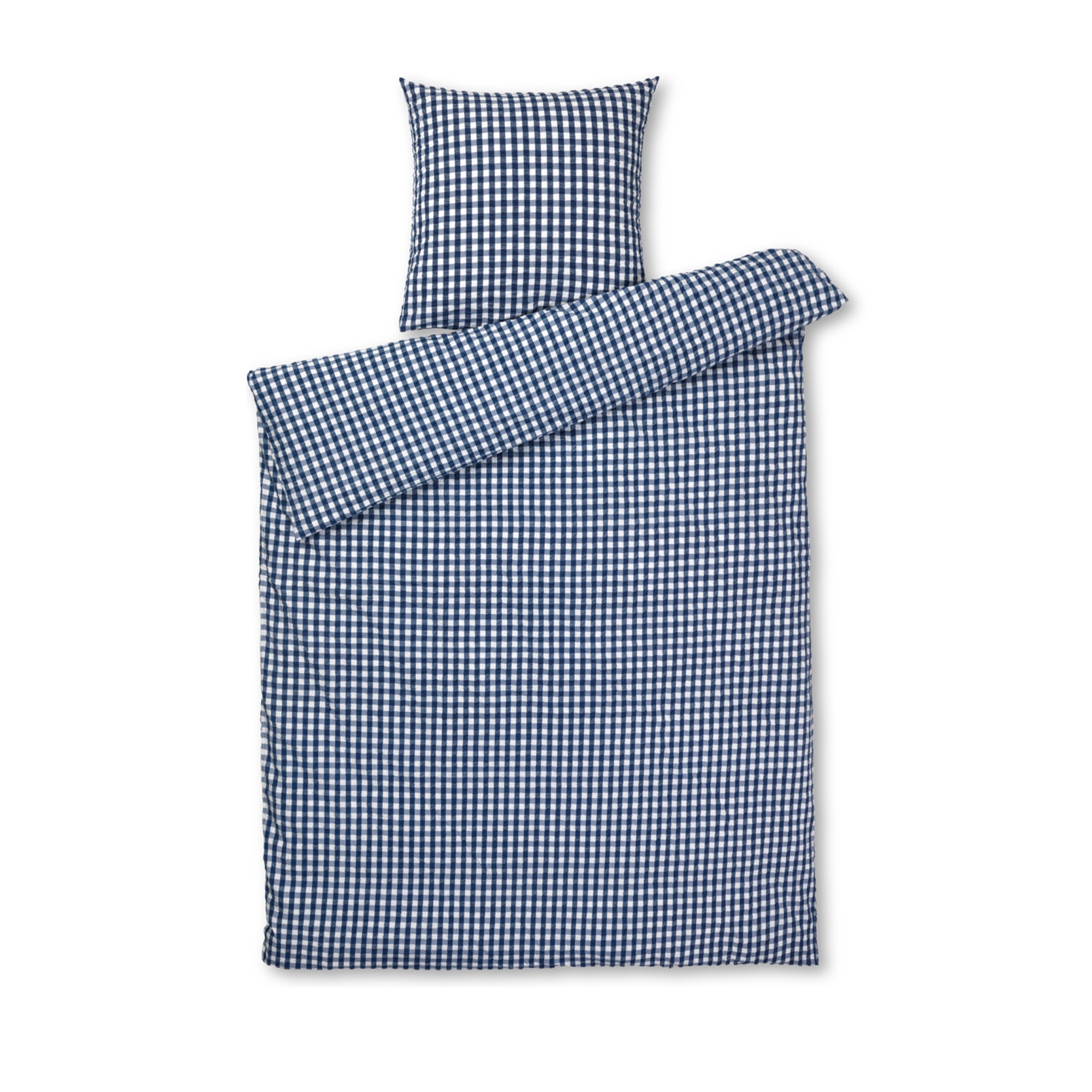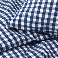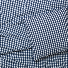 Den mjuka bomullen i kombination med den skrynkliga strukturen ger en unik känsla av lyx. Samtidigt är sängkläderna praktiska i vardagen, då de inte kräver strykning och behåller sitt fina uttryck tvätt efter tvätt. De fina rutorna i mörkblått ger ett lugnt och stilrent uttryck som passar både moderna och klassiska sovrum.
