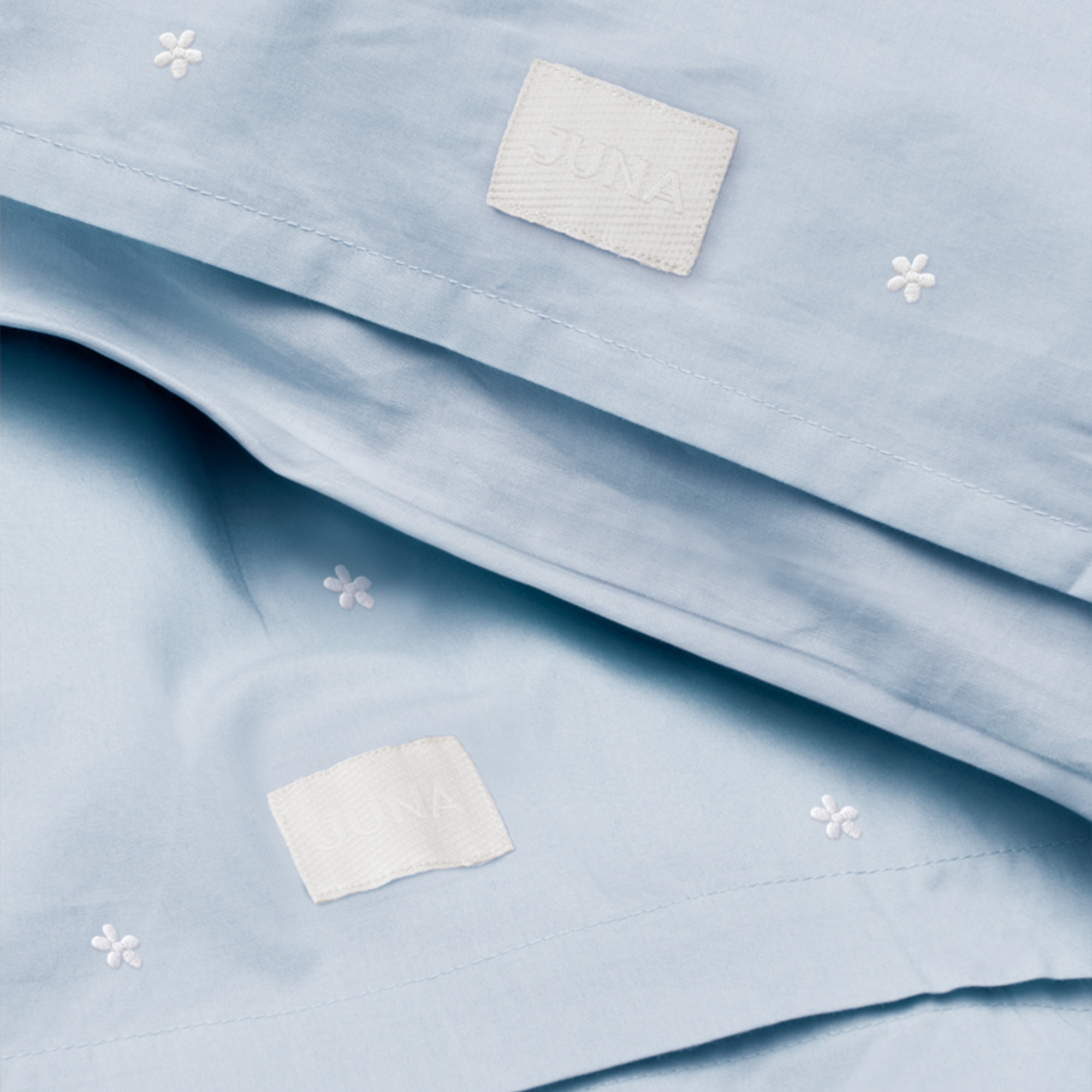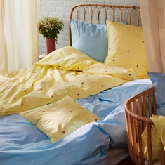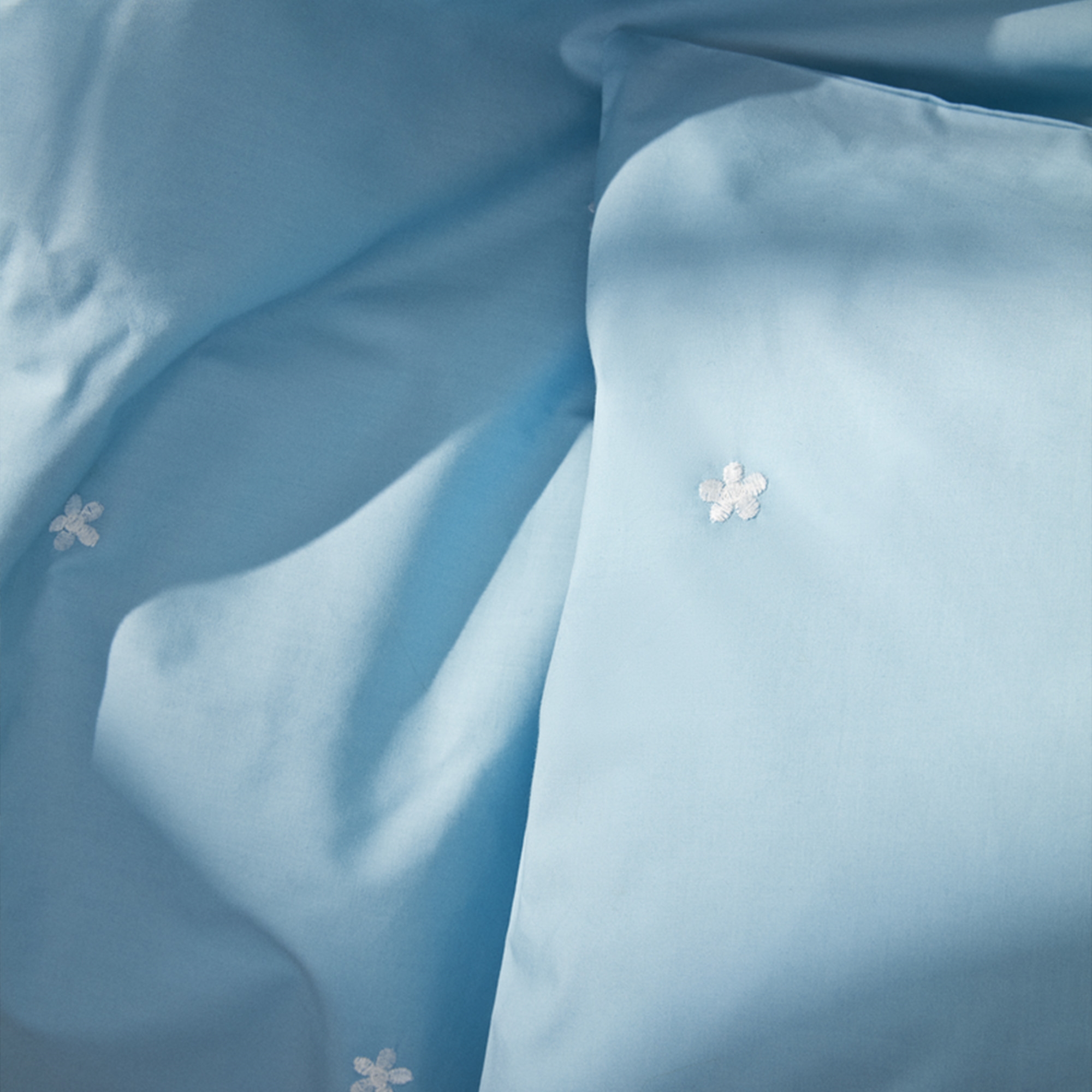 Daisy påslakanset med extra längd i ekologisk bomull - ljusblå med broderade blommor