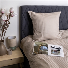 Skapa trygga och bekväma ramar för ditt barns sömn med detta exklusiva juniorpåslakansset i 100% bomullssatin från Borg Living. Påslakansetet är jacquardvävt med diskreta, enfärgade sandfärgade ränder, som ger ett lugnt och tidlöst uttryck – perfekt för både flick- och pojkrummet.