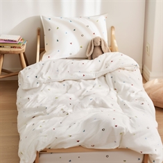 Framsidan »Sängkläder » Sängkläder för barn » Junior sengetøy 100x140 cm Junior sängkläder 100x140 cm - Råvitt påslakanset med små frukter - 100% mjukt bomullssänglinne Spara34% By Mats 349,00229,00SEKSpara 120,- I lager Trustpilot Antal Lägg i varukorgen Se mer från: By Mats Artikelnummer:12558-8 Läs vår sängklädesguide Se vårt stora utbud av lakan Se vårt stora utbud av täcken 100x140 Har du frågor om produkten? Hög andningsförmåga100% mjuk bomullOEKO-TEX® certifierad Påslakan: 100x140 cm - junior påslakanset Kuddfodral: 40x45 cm Material: 100% mjuk bomull Färg: Råvit Mönster: Frukter Stängning: Påslakan med knappar och kuddfodral med överlapp Tvätt: 60° Torktumling: Ja Tål strykning: Ja Certifiering: STANDARD 100 by OEKO-TEX® (2016OK0709). Din garanti för att produkten är fri från skadlig kemi. Mjukt junior sängkläder i 100% bomull, med små frukter. Producerat med lätta och andningsbara bomullstrådar som ger påslakansetet en känsla av mjukhet, vilket gör att täcket känns härligt för ditt barn att sova med. Balansen i naturliga egenskaper och komfort från det mjuka materialet, kombinerat med den mysiga designen, gör detta set till en säker favorit hos ditt barn. Fint junior påslakanset med ett all-over tryck av frukter, som inte bara är mjukt och behagligt, utan också pryder och är dekorativt i barnrummet. Påslakansetet är tillverkat i 100% bomull vilket gör setet slitstarkt, mjukt och ger hög absorption samt andningsförmåga. Den rena bomullskvaliteten ger ett härligt och mjukt påslakanset som dessutom är lätt att underhålla och skapar en härlig sovmiljö för ditt barn. Bomullssängkläder kan tvättas i 60° i tvättmaskin, vilket också bidrar till att hålla en hög hygiennivå. Påslakansetet är dessutom tillverkat med OEKO-TEX certifiering, vilket är din garanti för att setet är fritt från skadlig kemi. Gå på jakt efter favoriterna och mycket mer i vårt stora utbud av tillbehör till barnuniversum För barnet bör sängen vara en trygg plats och alla element ska tillsammans skapa mjuka och härliga omgivningar för barnet att finna ro i. Använd därför gärna barnets intressen för att skapa ett tryggt sovrum för barnet. Hos oss kan du hitta ett stort utbud av tillbehör till sängen och barnrummet, allt från madrasskydd till täcken, kuddar, sängkläder och mycket mer, och massor av produkter med alla barnens favoriter på. Allt detta är element som kan bidra till att skapa rätt sovmiljö och rum för ditt barn. Här kan du hitta fina och mjuka kvalitetslakan Tillbaka till Junior sengetøy 100x140 cm Du kanske också är intresserad av: Vitt sänglinne - 100% egyptisk bomullssatin - Juniorbäddset 100x140 cm - Turistripa - Smala ränderTemperaturreglerande och andningsbart material Extra fin 230TC satinväv för otrolig mjukhet Slät och lyxig yta mot huden 799,00 SEK499,00 SEK Madrasskydd för barn - 70x140 cm - Kokäkta bomull - Borg LivingAndningsbar och allergivänlig Mjuk bomull STANDARD 100 by OEKO-TEX®-certifierad 599,00 SEK349,00 SEK