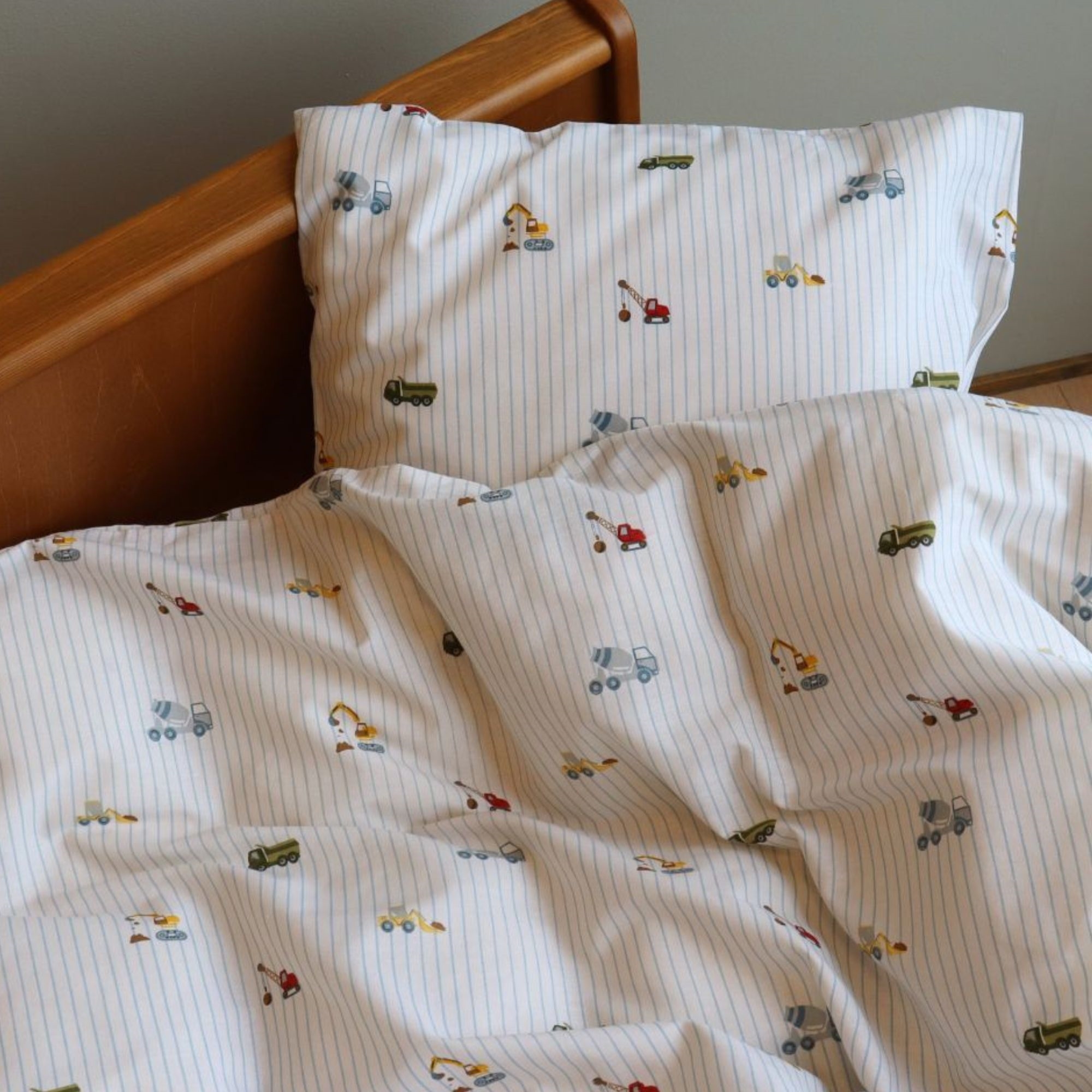 Framsidan »Sängkläder » Sängkläder för barn » Junior sengetøy 100x140 cm Junior sängkläder 100x140 cm - Randigt påslakanset med arbetsmaskiner - 100% mjukt bomullssänglinne Spara34% By Mats 349,00229,00SEKSpara 120,- I lager Trustpilot Antal Lägg i varukorgen Se mer från: By Mats Artikelnummer:12170-8 Läs vår sängklädesguide Se vårt stora utbud av lakan Se vårt stora utbud av täcken 100x140 Har du frågor om produkten? Hög andningsförmåga100% mjuk bomullOEKO-TEX® certifierad Påslakan: 100x140 cm - junior påslakanset Kuddfodral: 40x45 cm Material: 100% mjuk bomull Färg: Vit med blå ränder Mönster: Arbetsmaskiner Stängning: Påslakan med knappar och kuddfodral med överlapp Tvätt: 60° Torktumling: Ja Tål strykning: Ja Certifiering: STANDARD 100 by OEKO-TEX® (2016OK0709 AITEX). Din garanti för att produkten är fri från skadlig kemi. Mjukt randigt junior sängkläder i 100% bomull, med arbetsmaskiner. Producerat med lätta och andningsbara bomullstrådar som ger påslakansetet en känsla av mjukhet, vilket gör att täcket känns härligt för ditt barn att sova med. Balansen i naturliga egenskaper och komfort från det mjuka materialet, kombinerat med den mysiga designen, gör detta set till en säker favorit hos ditt barn. Fint randigt junior påslakanset med ett all-over tryck av olika arbetsmaskiner, som inte bara är mjukt och bekvämt, utan också pryder och är dekorativt i barnrummet. Påslakansetet är tillverkat i 100% bomull som gör setet slitstarkt, mjukt och ger hög absorption samt andningsförmåga. Den rena bomullskvaliteten ger ett härligt och mjukt påslakanset som dessutom är lätt att underhålla och skapar en skön sovmiljö för ditt barn. Bomullssängkläder kan tvättas i 60° i tvättmaskin, vilket också bidrar till att hålla en hög hygiennivå. Påslakansetet är dessutom OEKO-TEX certifierat, vilket är din garanti för att setet är fritt från skadlig kemi. Utforska favoriterna och mycket mer i vårt stora utbud av tillbehör till barnuniversum För barnet bör sängen vara en trygg plats och alla element ska tillsammans skapa mjuka och härliga omgivningar för barnet att finna ro i. Använd därför gärna barnets intressen för att skapa ett tryggt sovrum för barnet. Hos oss kan du hitta ett stort utbud av tillbehör till sängen och barnrummet, från madrasskydd till täcken, kuddar, sängkläder och mycket mer, och massor av produkter med alla barnens favoriter på. Alla dessa element kan bidra till att skapa rätt sovmiljö och rum för ditt barn. Här kan du hitta fina och mjuka kvalitetslakan Tillbaka till Junior sengetøy 100x140 cm Du kanske också är intresserad av: Junior sängkläder 100x140 cm - Mjukt vitt sängset i 100% egyptisk bomullssatin - Turiform sängkläderHög kvalitet Extra fin, mjuk & andningsbar Jacquardvävd 799,00 SEK499,00 SEK Madrasskydd för barn - 70x140 cm - Kokäkta bomull - Borg LivingAndningsbar och allergivänlig Mjuk bomull STANDARD 100 by OEKO-TEX®-certifierad 599,00 SEK349,00 SEK