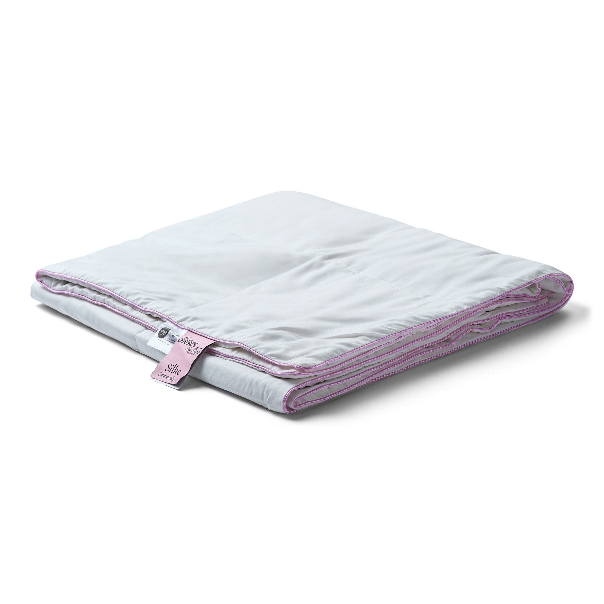 Den lätta silkefyllningen gör täcket luftigt och bekvämt utan att kännas tungt eller instängt.