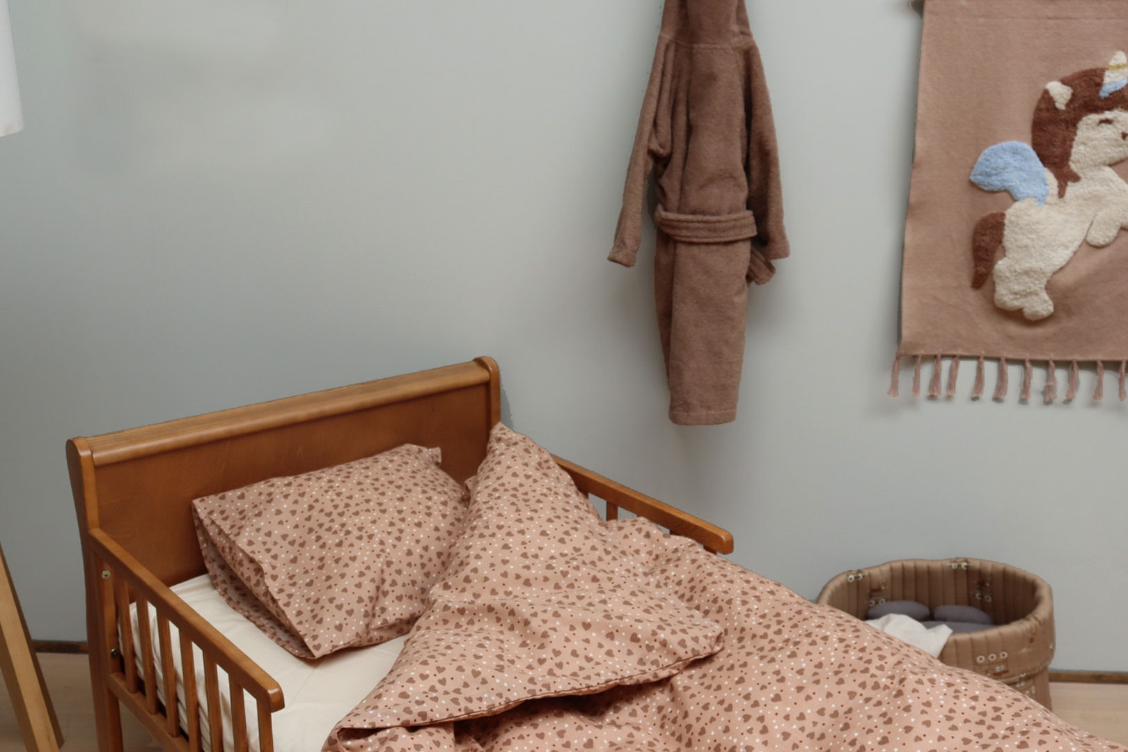 Framsidan »Sängkläder Juniorsängkläder 115x135 cm - Rosa med hjärtan - 100% bomullsbäddset Spara34% By Mats 349,00229,00SEKSpara 120,- I lager Trustpilot Antal Lägg i varukorgen Se mer från: By Mats Artikelnummer:12136-27 Läs vår sängkläderguide Se vårt stora utbud av lakan Se vårt stora utbud av täcken 100x140 Har du frågor om produkten? Motiv med nordisk inspiration100 % mjuk bomull - andas och bekvämOEKO-TEX®-certifierad Påslakan: 115x135 cm (observera storleken) Örngott: 40x45 cm Material: 100% bomull Färg: Rosa Motiv: Blandade hjärtan Stängning: Påslakan med knappar och örngott med överlappning Tvätt: 60 grader Torktumling: Ja Kan strykas: Ja (OBS: Observera storleken) Certifiering: STANDARD 100 by OEKO-TEX® (2016OK0709) Härligt bäddset med fint och unikt tryck för både flickor och pojkar. Sängkläderna är mjuka och bekväma, så att ditt barn får en trygg och lugn sömn. Detta vackra allover-tryck i dova färger kommer att pryda barnrummet och ge det en dekorativ touch. Täcket är lätt att hantera med smarta tryckknappar, medan kuddfodralet har en praktisk överlappning. Skapa en drömvärld med detta charmiga bäddset – sovstunden blir en fröjd. Sängkläderna är tillverkade av 100 % mjuk bomull. Bomullen är andningsbar, mjuk och skön mot barnets hud. Dessutom är det lätt att tvätta, vilket är avgörande när det kommer till sängkläder för barn som ofta kan bli fläckiga. Bekväma och mysiga sängkläder bidrar till att skapa en lugnande atmosfär som främjar en god natts sömn. Du hittar vårt utbud av kvalitetslakan för barn här. Vi har allt som behövs för att göra barnrummet magiskt och mysigt, så att de verkligen kan fördjupa sig i sina olika lekar och låta fantasin flöda. Se vårt urval för barnrummet här. Tillbaka till Sängkläder Du kanske också är intresserad av: Junior sengetøy 100x140 cm - Mykt hvitt sengesett i 100% egyptisk bomullssatin - Turiform sengelinnedHøy kvalitet Ekstra fin, myk & pustende Jacquardvevd 799,00 SEK485,00 SEK Dra-på-lakan 70x140 cm - Vit - 100% extra fin bomullssatin - Dra-på-lakan till barnmadrassDra-på-lakan - Vit 100% bomullssatin 70x140x15 cm 599,00 SEK399,00 SEK Madrasskydd för barn - 70x140 cm - Kokäkta bomull - Borg LivingAndningsbar och allergivänlig Mjuk bomull STANDARD 100 by OEKO-TEX®-certifierad 599,00 SEK349,00 SEK Barntäcke - myskdun - 100x140 cm - helårs barntäcke - Borg Living duntäcke100% myskduntäcke Bärighet: över 12 Helårstäcke Rekommenderat försäljningspris : 1.595,00 Spara : 610,00 2.599,00 SEK985,00 SEK