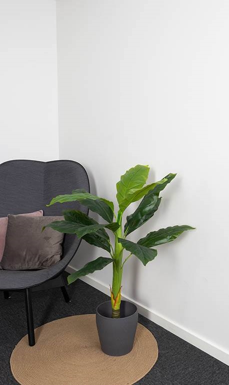 Framsidan »Inredning » Dekorationer » Konstgjorda växter Konstgjord bananplanta - Höjd 100 cm - 1 stam med gröna blad - Konstgjord golvväxt Spara38% Home-tex 799,00499,00SEKSpara 300,- I lager Trustpilot Antal Lägg i varukorgen Se mer från: Home-tex Artikelnummer:YD018 Har du frågor om produkten? Konstgjord bananplantaHöjd: 100 cmNaturtrogen växt i bra kvalitet Typ: Bananplanta - konstgjord golvväxt Färg: Grön Höjd: 100 cm Diameter: 90 cm Material: Plast Underhåll: Kan enkelt skötas med en fuktig trasa Levereras i: Kartong Svart kruka ingår inte. Växten står på fot, och vi rekommenderar att du placerar den i en kruka för ett komplett utseende. Naturtrogen och dekorativ bananplanta Vacker smal konstgjord bananplanta med stora gröna blad. Denna konstgjorda växt är enkel, tidlös och varar för evigt. Ta in naturen i ditt hem med en konstgjord bananplanta som aldrig går ur modet. Skapa liv och en lugn atmosfär i hemmet med en bananplanta. Växten är enstammig och förgrenar sig ut i fina stjälkar med stora gröna blad. Se vårt stora utbud av moderna hemtillbehör Konstgjorda växter är mycket populära eftersom de inte kräver någon skötsel eller underhåll och dessutom är allergivänliga. Konstgjorda växter är också oerhört lämpliga för kontorsytor, restauranger, sjukhus, äldreboenden och institutioner – alla ställen där den fräscha gröna färgen kan ge liv till rummet utan stort underhåll. Om du är ute efter en vacker och tidlös dekoration till din inredning, är konstgjorda växter ett utmärkt val. Tillbaka till Konstgjorda växter