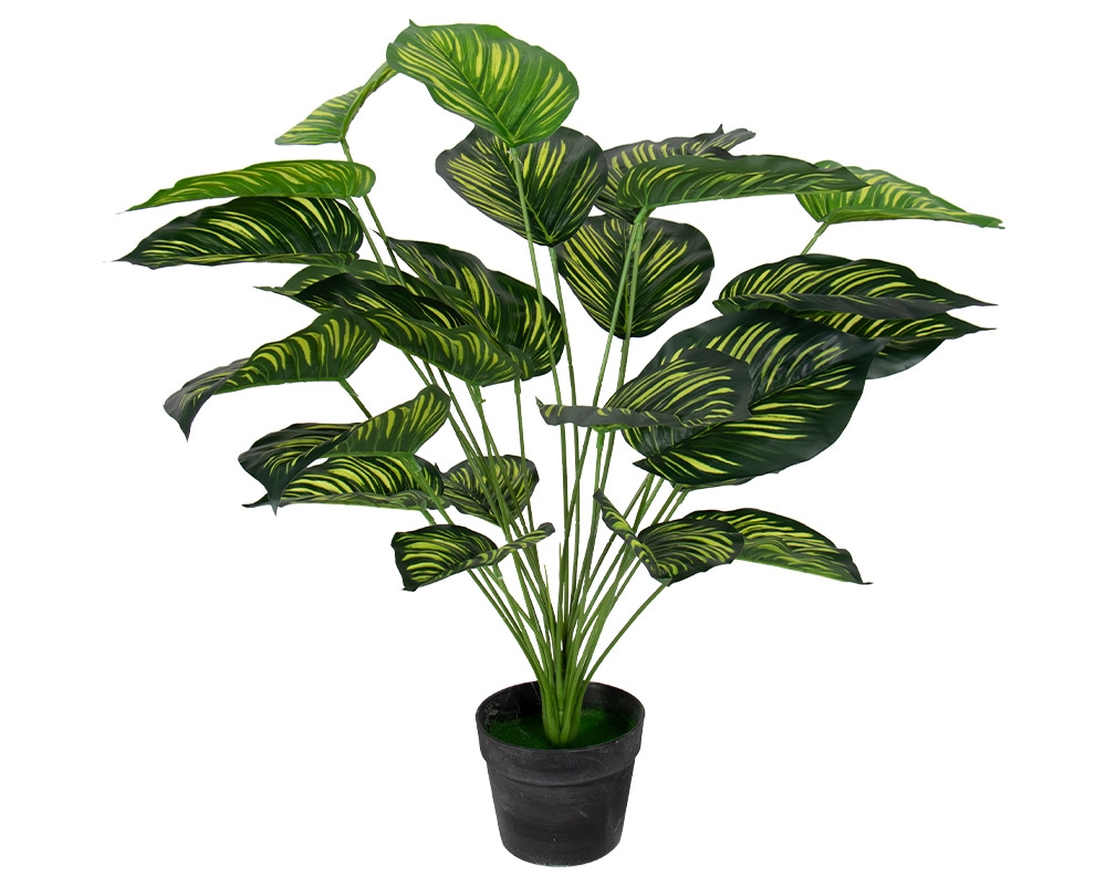 Framsidan »Inredning » Dekorationer » Konstgjorda växter Konstgjord växt 70 cm - Calathea med stora vackra gröna blad Spara33% Home-tex 599,00399,00SEKSpara 200,- I lager Trustpilot Antal Lägg i varukorgen Se mer från: Home-tex Artikelnummer:PR415 Har du frågor om produkten? Konstgjord calatheaHöjd: 70 cmMycket naturtrogen Typ: Konstgjord Calathea Färg: Gröna nyanser Höjd: 70 cm Diameter: 80 cm Material: Plast Underhåll: Kan enkelt underhållas med en fuktig trasa Levereras i: kartong Skapa ett hörn av tropisk ro i ditt hem med vår konstgjorda Calathea. Lägg till denna charmiga växt till din inredning och njut av dess tidlösa skönhet utan att oroa dig för underhåll. Se vårt stora utbud av moderna hemtillbehör. Konstgjorda växter är mycket populära eftersom de inte kräver skötsel och är allergivänliga. Konstgjorda växter passar också utmärkt för kontor, restauranger, sjukhus, äldreboenden och institutioner – ställen där den fräscha gröna färgen kan ge liv åt rummet utan omfattande underhåll. Så om du letar efter en vacker och tidlös planta till din inredning, är detta gummiträd ett utmärkt val. Tillbaka till Konstgjorda växter