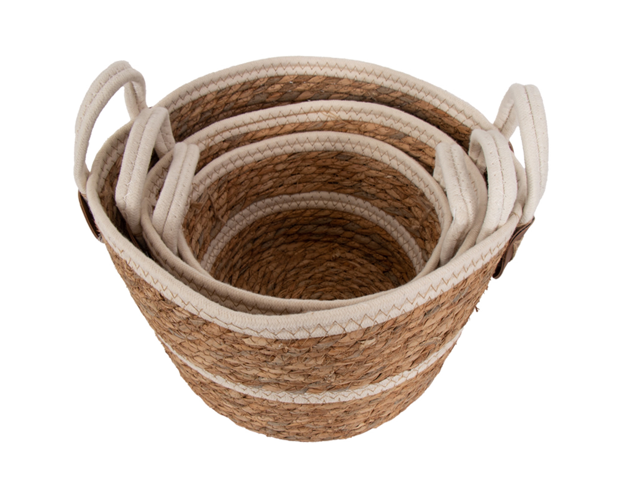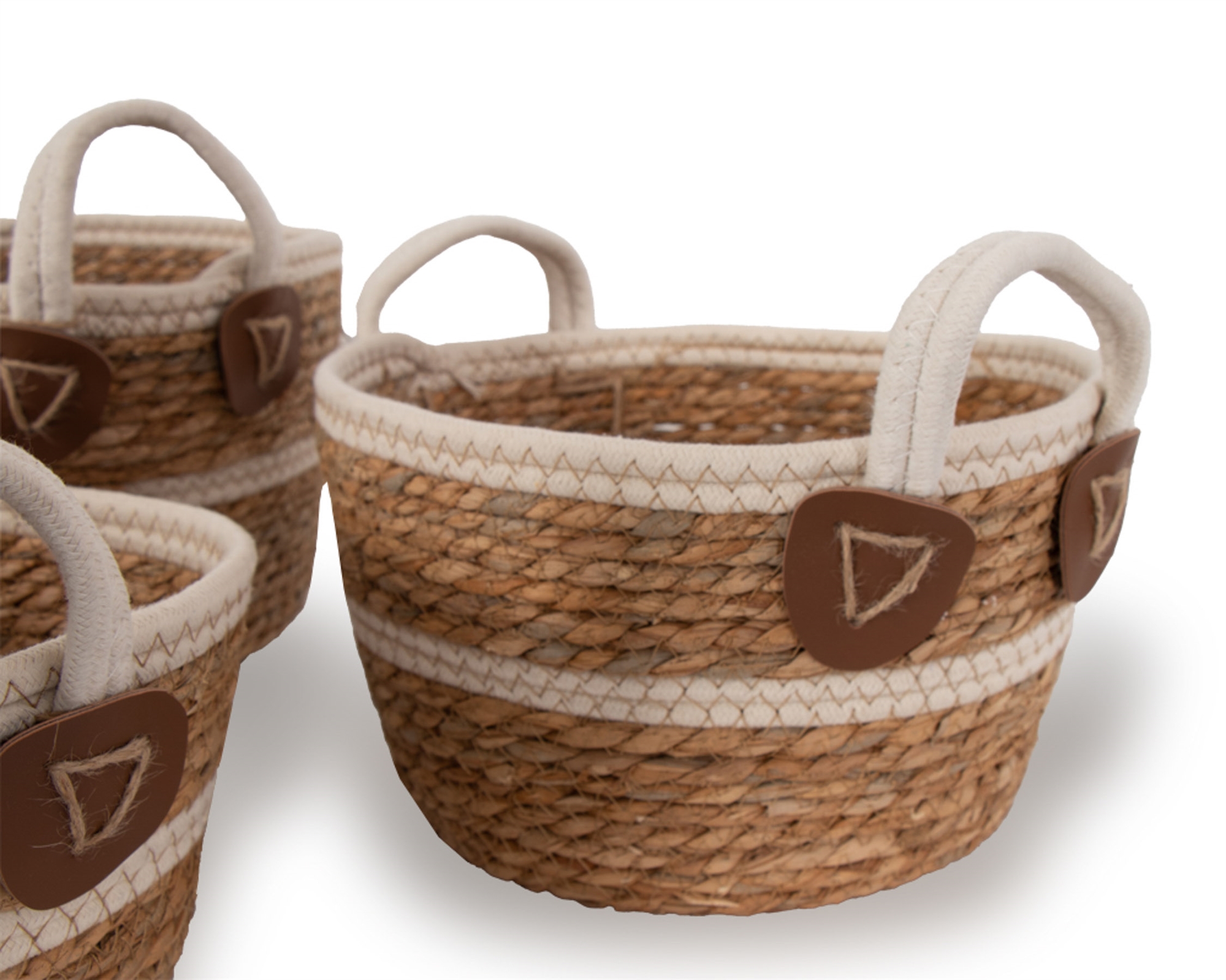 Framsidan »Inredning » Förvaring » Korgar av flätad rotting Korgsats - 3 st. flätade korgar i sjögräs - Perfekt för små förvaring Spara40% Home-tex 449,00269,00SEKSpara 180,- Fåtal i lager Trustpilot Antal Lägg i varukorgen Se mer från: Home-tex Artikelnummer:PR761 Har du frågor om produkten? Perfekt för förvaringUnika och stilfulla detaljerRobust design Material: Sjögräs och bomull Mått: Stor: 20x32 cm Mellan: 17x25 cm Liten: 13x23 cm Skapa ordning med stil - sjögräskorgssetDetta set av sjögräskorgar är skapat för att hjälpa dig att organisera ditt hem på ett elegant sätt. Setet består av tre korgar i olika storlekar som är designade för att möta olika förvaringsbehov. Varje korg är gjord med unika detaljer som tillför en speciell charm till ditt hem. Sjögräs som materialSjögräs är ett naturligt och hållbart material känt för sin robusthet och hållbarhet. Materialet ger en rustik känsla till vilket rum som helst, samtidigt som det behåller sin funktionalitet. Sjögräs är också lätt att rengöra och underhålla, vilket gör det till ett praktiskt val för förvaring.Den unika designenDesignen på dessa korgar är en blandning av traditionellt hantverk och modern estetik. Korgarna har topp- och mittensektioner som är fästa med vitt bomullsrep, vilket skapar en kontrasterande effekt. Handtagen är tillverkade av samma vita bomullsrep och är fastsatta med brunt konstläder och linnesnöre, vilket ger korgarna ett unikt och elegant utseende.Du kan hitta liknande produkter i kategorin förvaring. Tillbaka till Korgar av flätad rotting