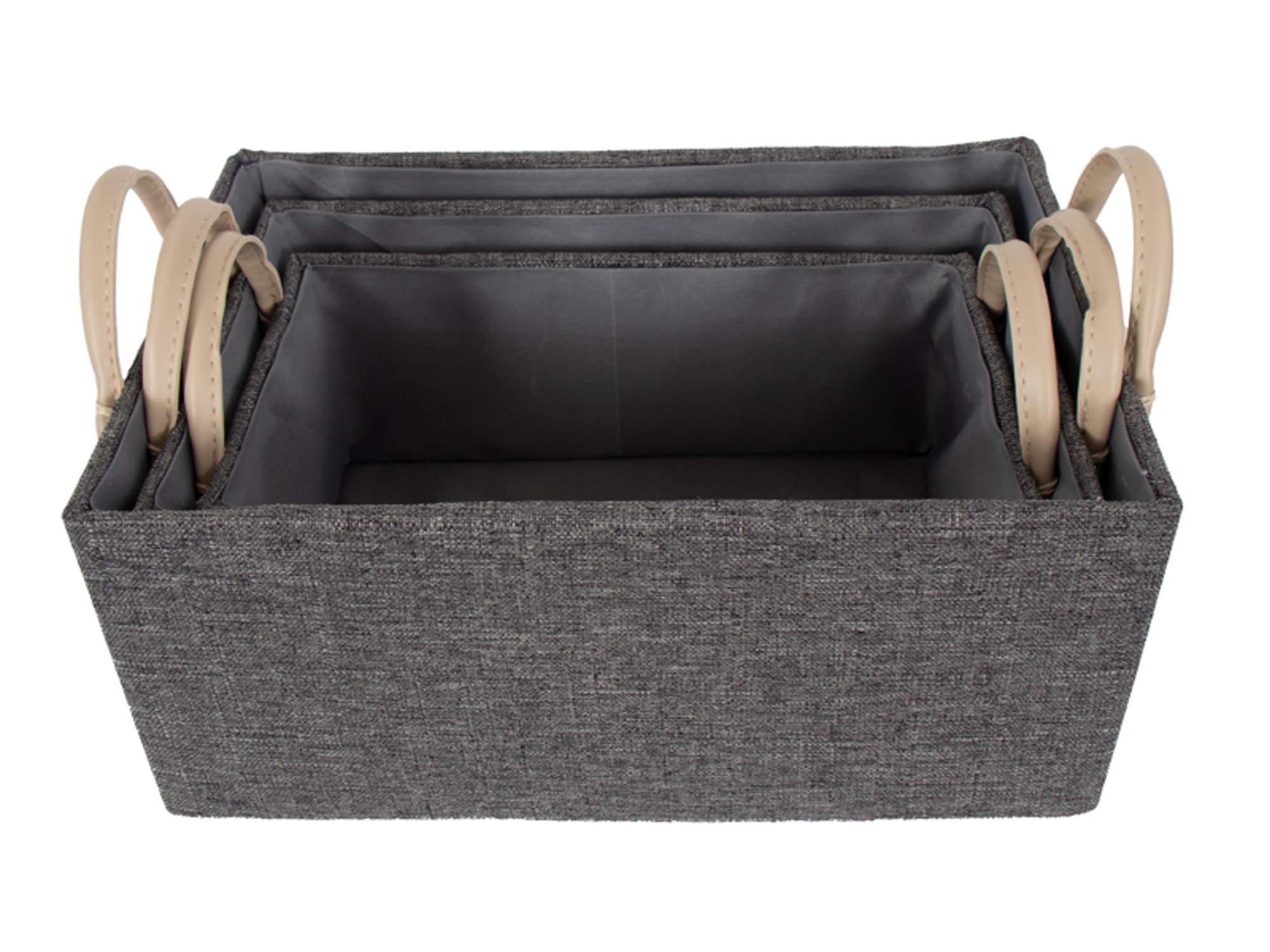Framsidan »Inredning » Förvaring » Korg Korgset för förvaring - 3 praktiska korgar - Snygg grå med handtag Spara40% Home-tex 449,00269,00SEKSpara 180,- I lager Trustpilot Antal Lägg i varukorgen Se mer från: Home-tex Artikelnummer:PR763 Har du frågor om produkten? Snygg design i grått.Praktiskt set med tre korgarRobust handtag. Material: Konstläder och polyester Mått: Stor: 14x31x21 cm Mellan: 12x28x19 cm Liten: 10x25x15 cm Organisera ditt hem med stilfulla förvaringskorgarDessa grå förvaringskorgar är både praktiska och estetiskt tilltalande. Setet består av tre korgar i olika storlekar, vilket gör att du kan organisera dina saker på ett effektivt och elegant sätt.Konstläder Konstläder är slitstarkt och lätt att rengöra. Det ger korgarna ett elegant utseende och gör dem samtidigt robusta och hållbara. Handtagen av konstläder gör det enkelt att flytta runt korgarna i hemmet. Praktisk designDesignen på dessa korgar är idealisk för att organisera småsaker. Oavsett om det är tidningar, fjärrkontroller eller andra vardagliga föremål, hjälper dessa korgar dig att hålla hemmet snyggt och organiserat. Det enfärgade invändiga tyget skyddar dina tillhörigheter medan det yttre tyget ger en rustik touch till din inredning. För liknande produkter, besök vår kategori Förvaring. Tillbaka till Korg