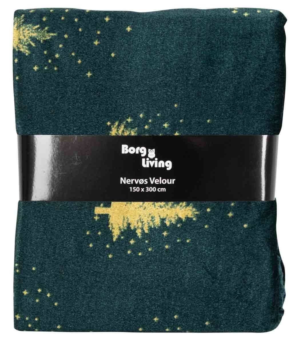 Denna mörkgröna velourduk med guldfärgade julgranar är perfekt för julens middagar. Duken är tillverkad i ett slitstarkt material och ligger snyggt på bordet utan veck, samtidigt som den hänger elegant ner längs bordets sidor. Den stilrena designen och den vackra glansen gör det enkelt att kombinera duken med olika dekorationer för att skapa en inbjudande dukning. Krossad velour är känd för sin sammetslena yta och djupa färger. Materialet är mycket slitstarkt och håller formen bra, vilket gör det idealiskt för en duk. Velourens glansiga yta ger en lyxig känsla till din dukning och det mjuka materialet känns behagligt mot huden. Dessutom är krossad velour lätt att underhålla, eftersom den kan tvättas i maskin.