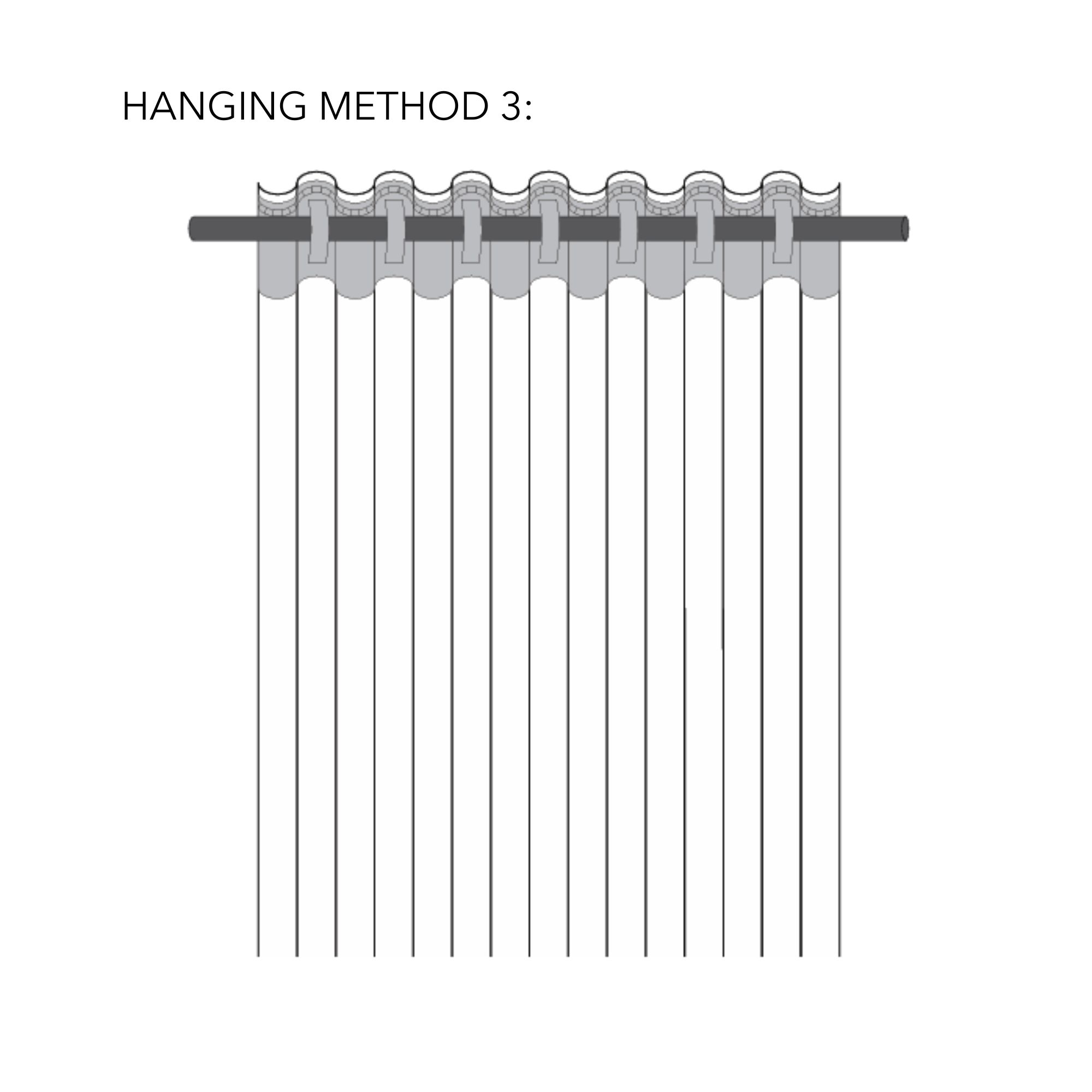 Gardinen har minst 3 upphängningsmöjligheter. Det är också de vanligaste monteringssätten för gardiner.