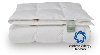 Framsidan »Täcken » Typ av täcke » Myskduntäcken Lätt helårstäcke - myskdun svalt täcke - Samsö-dynan - 140x200 cm - Quilts Of Denmark Spara50% Norvigroup 5.899,002.968,00SEKSpara 2.931,- Fri frakt på denna varaI lager Trustpilot Antal Lägg i varukorgen Se mer från: Norvigroup Artikelnummer:2055007 Har du frågor om produkten? Hög andningsförmåga, och få en lugn och härlig nattsömnFyllt med fina vita myskdun med hög bärförmåga 11Lätt helårstäcke producerat i Danmark Storlek: 140x200 cm enkel täcke Typ: Svalt helårstäcke Fyllning: 90% myskdun Varumärke: Quilts Of Denmark - Samsö Producerat i: Danmark Bärförmåga: Över 11 (Gammal mätmetod) Bärförmåga: 725 (Ny mätmetod) Fyllnadsvikt: 400g Överdrag: 100% ekologisk bomull 60/60 - TC280 Konstruktion: 6x8 kassettäcke med pipingkant Tvätt: 60° (Viktigt att använda enzymfritt tvättmedel) Torktumlare: Ska torktumlas med torkbollar Garanti: 10 år Certifiering: EN12934-standarden - Klass 1 dun Certifiering: NOMITE - Fri från husdammkvalster Certifiering: Downafresh - 100% rena dun Certifiering: Downpass - Högsta djuretiska förhållanden Certifiering: STANDARD 100 by OEKO-TEX® (1176-194) Täcket levereras i praktisk förvaringspåse Täcket är både Svanenmärkt och rekommenderat av Asthma Allergy Nordic. Se alla våra kuddar från vår Ö-serie Samsö-dynan - Ett danskt producerat helårstäcke från danska Quilts of Denmark. Ett kvalitetstäcke som är tillverkat i 100% ekologisk bomull och med värmebehandlade och optimalt rengjorda dun. Det mjuka myskdunstäcket är lätt, mjukt och väldigt bra för dig som har det varmt när du sover, men inte tycker att ett svalt täcke på vintern är helt tillräckligt. Täcket är ett lätt helårstäcke, som är en aning varmare än ett sommartäcke. SAMSØ är den serie som har flest certifieringar och godkännanden vad gäller att vara hållbar och för att inte innehålla något med särskild risk att ge hudallergi. SAMSØ-dynan levereras dessutom i en fin väska, som är gjord av återvunnet material. Se vårt stora utbud av påslakan i 140x200 cm här Kollektionen av de danska Ø-dynorna är designad, utvecklad och producerad i Danmark med fokus på kvalitet, miljö och djurvälfärd. Quilts Of Denmark samarbetar med en rad oberoende organisationer för att säkerställa kvaliteten och integriteten i sina produkter. De små öarna ligger i olika vatten – allt från Västkustens hårda vågor till de stilla fjordarna, vikar och bukter där det råder lugn, ro och idyll. "Quilts of Denmark är högkvalitativa dunprodukter som tillverkas i Danmark, av människor med äkta passion. Nordisk kvalitet utan kompromiss." Se dynguiden här Se alla våra enkel/täcken här Läs allt om underhåll av täcken och kuddar här Tillbaka till Myskduntäcken