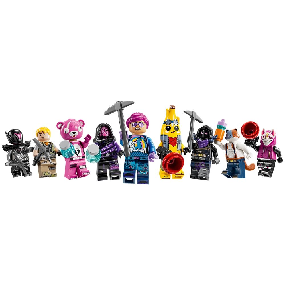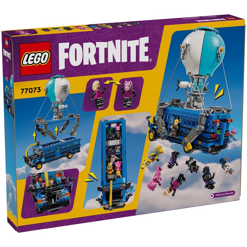 Framsidan »Alla LEGO-produkter LEGO Fortnite - Battle Bus - 77073 - 954 delar LEGO Architecture Bra pris:1.269,00SEK Fri frakt på denna varaFåtal i lager Trustpilot Antal Lägg i varukorgen Se mer från: LEGO Architecture Artikelnummer:LEG77073 Har du frågor om produkten? Sätt fart på fantasin med det videospelinspirerade LEGO® Fortnite Battle Bus för fans från 10 år. Byggsatsen är baserad på det spännande videospel, så spelare kan skapa ett coolt Fortnite-fordon. Fans kan ge sig in i den spännande LEGO Fortnite-världen när de bygger bussen, som har rullande hjul, avtagbart tak samt den omedelbart igenkännliga luftballongen. Men det är bara början. När bussen är färdig kan de se fram emot att utforska ikoniska tillbehör såsom Slurp Juice, en Grappler, Pickaxes och Slap Juice samt 9 minifigurer av ikoniska Fortnite-outfits. Figurerna ger äventyret liv och kan placeras i bussen för att förstärka den kreativa rollleken. När barnen är klara med att leka med samlarleksaken blir den till ett fantastiskt LEGO-inredningselement som de stolt kan ställa ut i sitt rum eller vid sin gamingstation. Tillbaka till Alla LEGO-produkter