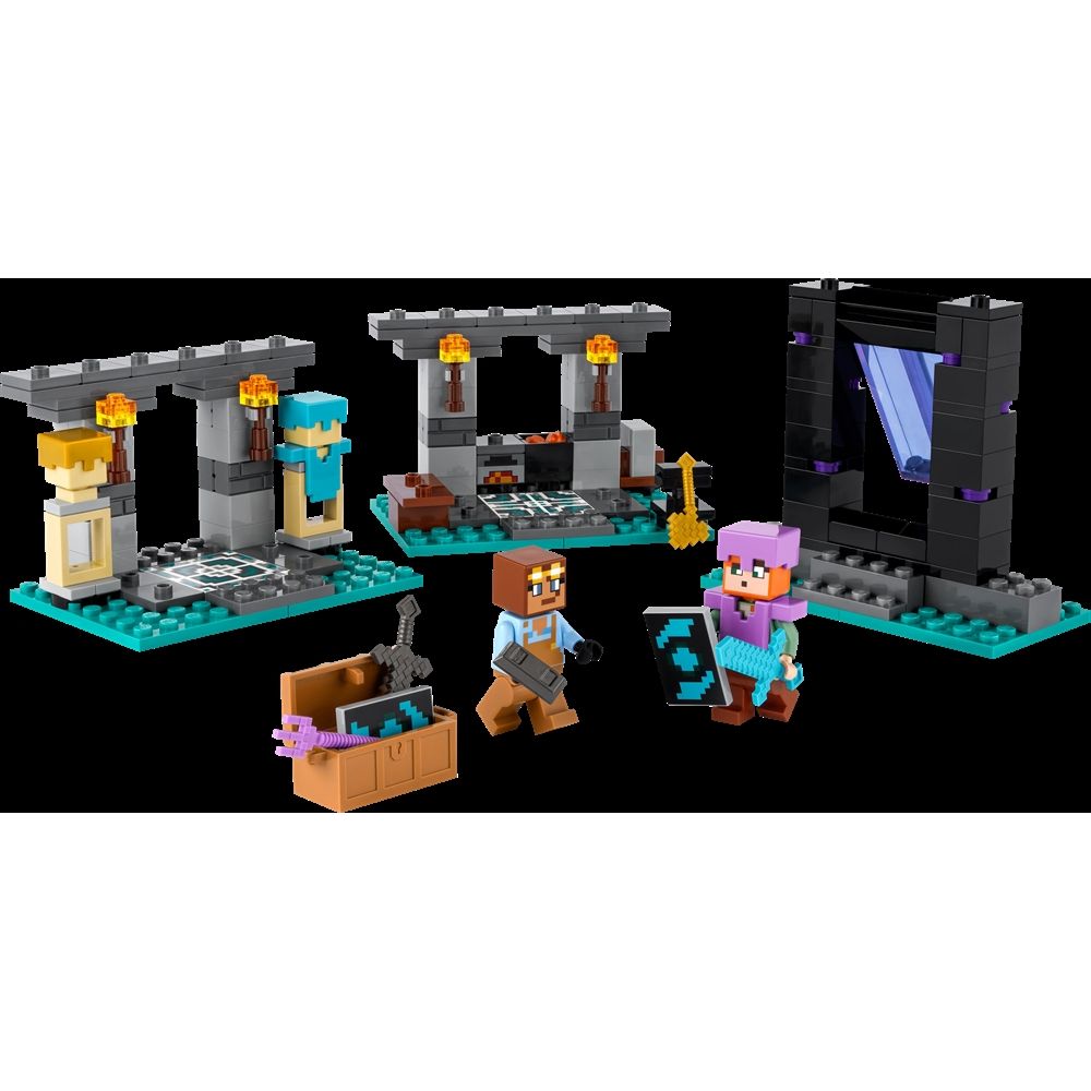 Framsidan »Leksak » LEGO » LEGO Minecraft LEGO Minecraft - Vapenkammaren - 21252 - 203 delar LEGO Minecraft Bra pris:309,00SEK Fåtal i lager Trustpilot Antal Lägg i varukorgen Se mer från: LEGO Minecraft Artikelnummer:LEG21252 Har du frågor om produkten? Minecraft-entusiaster kommer att älska möjligheten att bygga och leka med ikoniska vapen och element från spelet i detta LEGO-set. Detta gaming-byggleksak för barn innehåller 2 välkända figurer: Minecraft-actionhjälten Alex med sin sköld och diamantsvärd och den flitiga rustningssmeden. Det finns 3 miljöer att utforska: arbetsområdet med ett städ, ugn, slipsten och en kittel fylld med lava, rustningsrummet med en kista som innehåller en gyllene yxa, en förtrollad treudd, ett netherit-svärd, en sköld och andra Minecraft-resurser, samt Nether-portalen, som har en ingång med en svängdörr till spelarnas nästa äventyr. Tillbaka till LEGO Minecraft