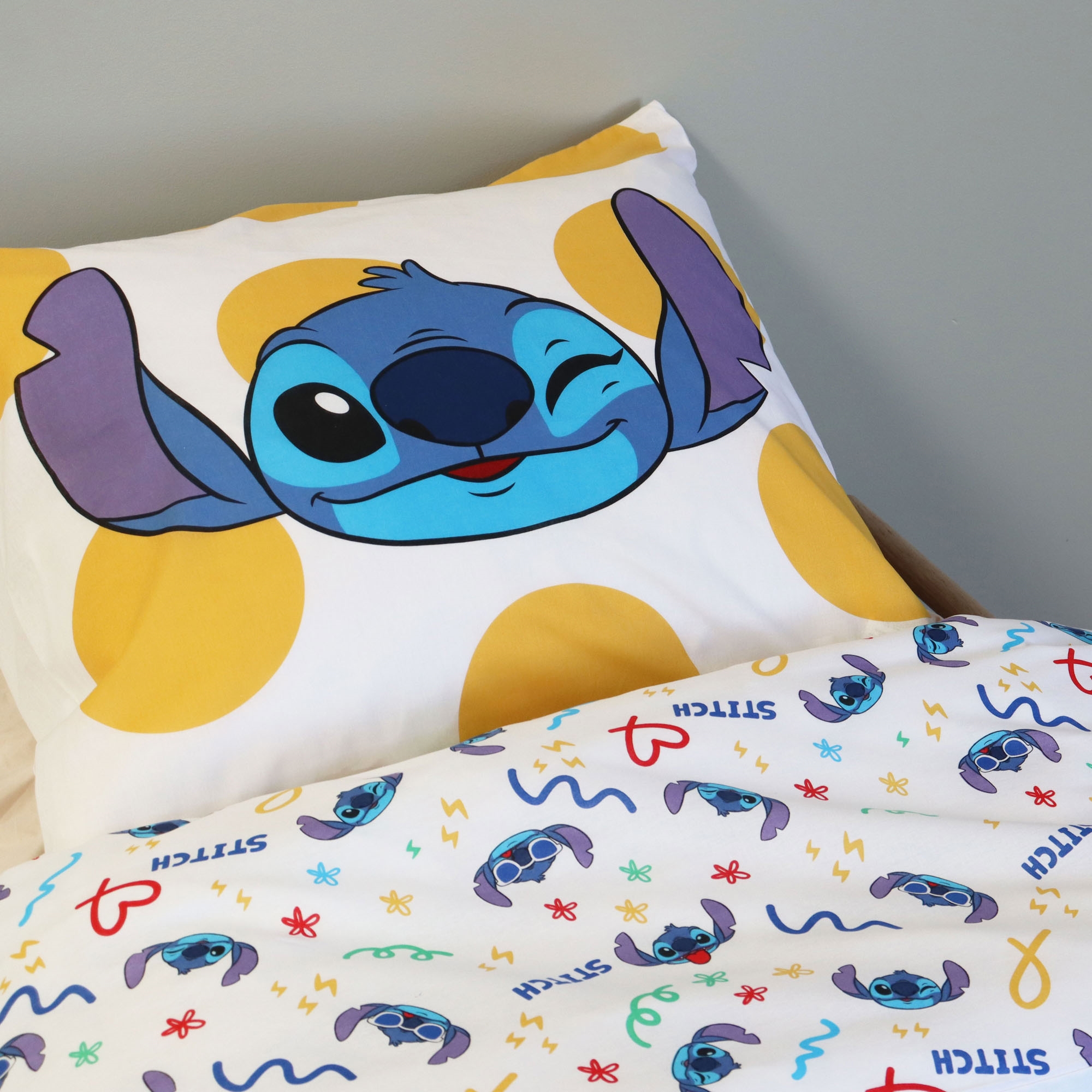 Framsidan »Sängkläder » Sängkläder för barn » Sängkläder för Barn 140x200 cm Lilo och Stitch sengetøy 140x200 cm - Vändbart påslakanset med Stitch - 100% mjukt bomullssänglinne Spara36% Licens 549,00349,00SEKSpara 200,- I lager Trustpilot Antal Lägg i varukorgen Se mer från: Licens Artikelnummer:6089-1 Läs vår sängklädessguide Se vårt stora utbud av lakan Se vårt stora utbud av täcken 140x200 Har du frågor om produkten? Hög andningsförmågaMjukt och härligt bomullOEKO-TEX® certifierat Påslakan: 140x200 cm Kuddfodral: 60x63 cm Material: 100% mjuk bomull Färg: Vit och gul Mönster: Vändbart - Framsida med Stitch, baksida med all-over print Stängning: Påslakan med knappar, kuddfodral med överlapp Tvätt: 60° Torktumling: Ja Tål strykning: Ja Certifiering: STANDARD 100 by OEKO-TEX® (2011PK0073 AITEX). Din garanti för att produkten är fri från hälsofarlig kemi. Påslakanset i 100% bomull med Stitch från Lilo och Stitch. Tillverkat med lätta och andningsbara bomullsfibrer ger detta påslakanset en känsla av mjukhet som gör att täcket faller naturligt runt ditt barn. Ett slitstarkt påslakanset med hög andningsförmåga som gör läggdags till en glad upplevelse. Skapa en mysig stämning i barnrummet med detta Stitch påslakanset med gula cirklar. Påslakansetet är vändbart. Med en söt design av Stitch på framsidan och all-over print på baksidan kommer detta sängkläder garanterat göra läggdags till en glad upplevelse. Påslakansetet är tillverkat i 100% mjuk bomull som gör setet slitstarkt och med hög andningsförmåga. Den rena bomullskvaliteten ger ett härligt och mjukt påslakanset som bidrar till att främja god sovkomfort för barnet. Sängkläderna är också OEKO-TEX certifierade, vilket är din garanti för att setet är fritt från skadliga ämnen, så det är säkert för barnet att använda. Se vårt stora utbud av tillbehör till barnrummet För barnet bör sängen vara en trygg plats och alla element ska tillsammans skapa mjuka och härliga omgivningar där barnet kan finna ro. Använd gärna barnets intressen för att skapa ett tryggt sovrum för barnet. Hos oss kan du hitta ett stort utbud av tillbehör till sängen och barnrummet, från övermadrasslakan till sommartäcken, kuddar, sängkläder och mycket mer, samt massor av produkter med alla barnens favoriter. Allt detta är element som kan bidra till att skapa rätt sovmiljö och rum för ditt barn. Här kan du hitta fina och mjuka kvalitetslakan Tillbaka till Sängkläder för Barn 140x200 cm