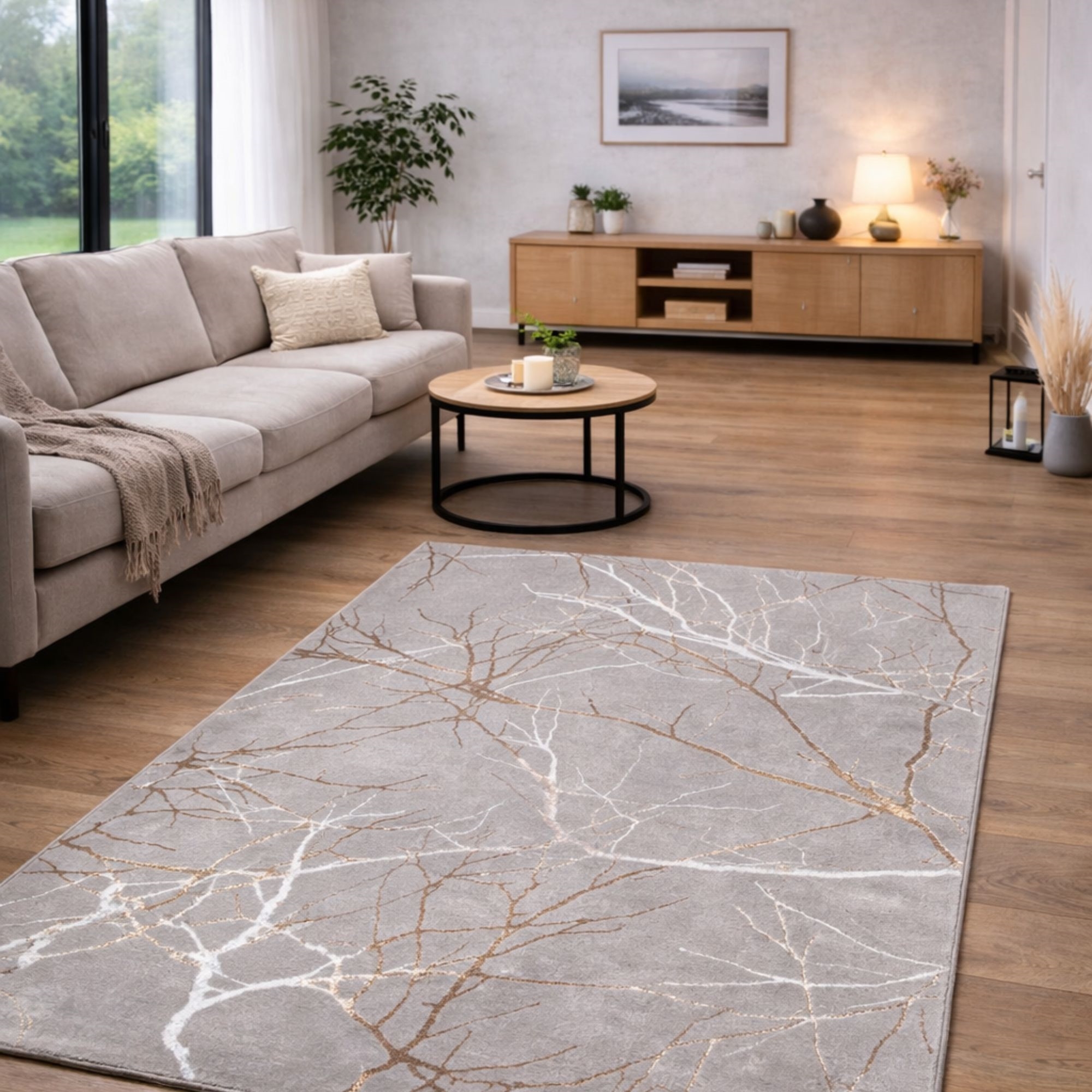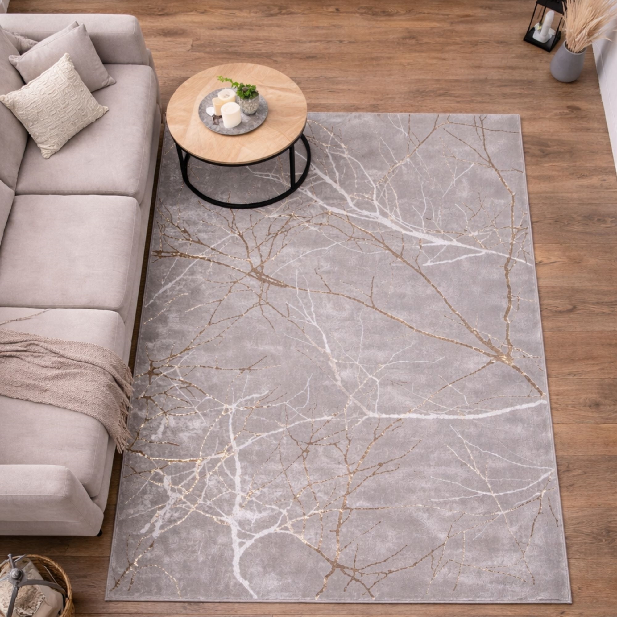 Framsidan »Inredning » Dekorationer » Mattor Matta - 140x200 - Grå - Guld/silver detaljer - Creation - Nordstrand Home Spara12% Nordstrand Home 1.699,001.499,00SEKSpara 200,- Fri frakt på denna varaI lager Trustpilot Antal Lägg i varukorgen Se mer från: Nordstrand Home Artikelnummer:TA1029-3 Se vårt stora utbud av konstgjorda växter och blommor Se vårt utbud av mattor Se vårt stora utbud av allt för din heminredning Har du frågor om produkten? Elegant grå matta med guld- och silverdetaljerTätt vävd kvalitet i 100% polyesterVacker kombination av matta och blanka trådar Typ: Matta med kort lugg Storlek: 140x200 cm Tjocklek: 8 mm Färg: Grå med motiv Design: Creation Material: 100% polyester Baksida: Bomull Användning: Inomhus Märke: Nordstrand Home Antal punkter/m2/tätt vävd: 480.000 Rekommenderad skötsel: Dammsugning & fuktig trasa Saknar du ett enkelt och lätt sätt att skapa helhet i ditt hem? Då kan denna vackra matta vara det element som binder ihop inredningen. Ett enkelt men elegant sätt att piffa upp hemmet är att välja denna vackra grå matta med trämotiv och eleganta guld- och silverdetaljer. Det dekorativa trämotivet skapar ett levande och annorlunda uttryck, där metallic-effekten tillför rummet djup och en lyxig prägel. De fina kontraster mellan de grå nyanserna och de glänsande detaljerna gör mattan till ett naturligt blickfång i både vardagsrum, sovrum eller kontor. Den vävda kvaliteten ger en enhetlig struktur och en yta som är lätt att underhålla i vardagen. Polyesterfibrerna bidrar till färgäkthet och hållbarhet, så mattan håller sig vacker i många år. Det är ett idealiskt val för dig som vill ha en modern matta med ett exklusivt uttryck och fina detaljer som lyfter inredningen. Se vårt stora utbud av olika hemtextilier här Med Nordstrand Home är du säker på hemtextilier i dansk design - i nordisk stil. Nordstrand Home lägger stor vikt vid känslan av välbefinnande i en vacker, men samtidigt avslappnad miljö. Med Nordstrand Home behöver du inte kompromissa, du hittar alltid produkter i klassiska och moderiktiga färger. Nordstrand Home – Så känner du dig hemma! Tillbaka till Mattor