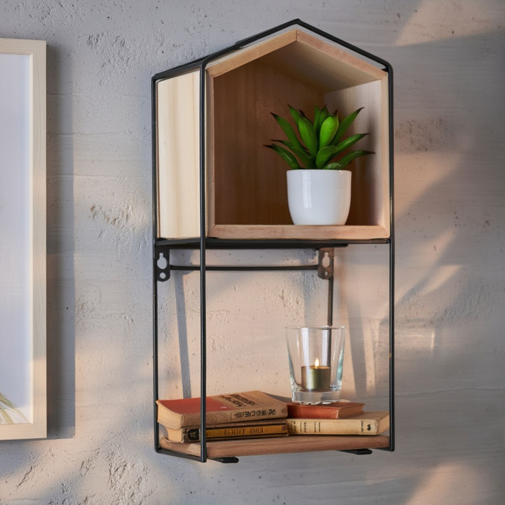 Framsidan »Dekorationsföremål Metallhylla - Vägghängd eller stående - Höjd 40 cm. - Svartlackerad metall och trä Spara50% HOME-TEX 599,00299,00SEKSpara 300,- I lager Trustpilot Antal Lägg i varukorgen Se mer från: HOME-TEX Artikelnummer:PT130 Har du frågor om produkten? Snygg designRobust konstruktionMångsidig användning MaterialSvartlackerad metall Trä Storlek Höjd: 40 cm. Bredd: 20 cm. Med skruvhål Ja VägghyllaDenna vägghylla är både praktisk och elegant. Den är tillverkad av svartlackerad metall och trä, vilket ger en fin kontrast och ett modernt utseende. Hyllan kan användas för att visa upp dina favoritprylar eller för förvaring av nödvändigheter inom räckhåll.Med sin höjd på 40 cm och bredd på 20 cm är den idealisk för både stora och små rum.Svartlackerad metallär känd för sin hållbarhet och robusthet. Den tål både slitage och tidens tand, vilket gör den till ett idealiskt val. Den svarta lackeringen tillför ett sofistikerat och modernt uttryck som passar i många inredningsstilar.Multifunktionell hyllaDenna hylla är inte bara vacker i inredningen, utan också en praktisk förvaringslösning. Den kan användas på många olika sätt beroende på dina behov och önskemål. Du kan använda den för att visa dina favoritprylar eller för att hålla ordning på små saker som nycklar och solglasögon. Valet är ditt.För liknande produkter, besök vår kategori Inredning. Tillbaka till Dekorationsföremål