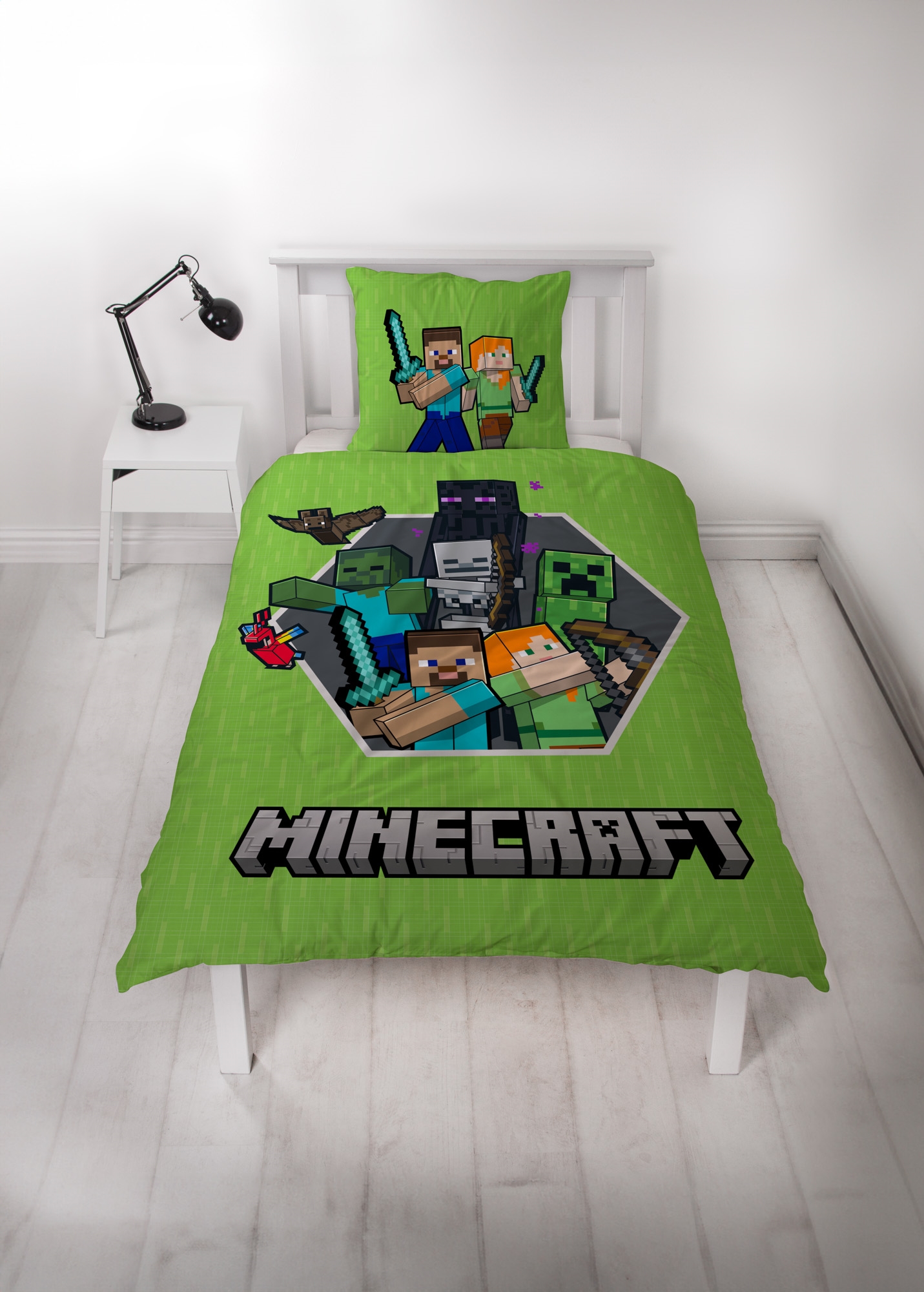 Framsidan »Sängkläder » Sängkläder för barn » Sängkläder för Barn 140x200 cm Minecraft sengetøy av flanell - 140x200 cm - Sengetøy med vendbart design - 100% bomullssengetøy Spara30% Licens 499,00349,00SEKSpara 150,- Fåtal i lager Trustpilot Antal Lägg i varukorgen Se mer från: Licens Artikelnummer:1847-1 Les vår sengetøyguide Se vårt store utvalg av overmadrasslaken Se vårt store utvalg av dyner 140x200 Har du frågor om produkten? Mykt og deilig bomullOEKO-TEX® sertifisertPopulært Minecraft-design Dynetrekk: 140x200 cm Pudetrekk: 60x63 cm Materiale: 100% myk bomull Farge: Grønn og hvit Motiv: Vendbart design - forside med motiv av bl.a. Creeper, Slenderman, Steve og Alex, bakside med all-over print av Minecraft Lukking: Dyne med knapper og pudetrekk med overlapp Vask: 60° Tørketrommel: Ja Tåler stryking: Ja Sertifisering: STANDARD 100 by OEKO-TEX® (11-31077 Shirley). Din garanti for at produktet er fritt for helseskadelig kjemi. Superkult sengetøy med Minecraft, på forsiden er det motiv av de kule figurene fra den populære verden – det smarte sengetøyet har vendbart design. Det myke sengetøyet produsert i 100% bomull er både pustende og absorberende, og gir god sovekomfort. Et slitesterkt bomullssengetøy for barn som gjør barnerommet litt mer spennende. Minecraft - Spillet som har vunnet veien inn til alle barns og tenåringers spillhjerter. Alle spillglade barn eller tenåringer vil elske å krype under dynen med dette sengetøyet. Sengetøyet er vendbart, og har på den ene siden print av de mest ikoniske og skumle figurene fra spillets verden, og på den andre siden et kult all-over print av figurer bl.a. Steve og Alex. Sengetøyet er produsert i 100% myk bomull som gjør settet slitesterkt og med høy pusteevne. Den rene bomullskvaliteten gir et lekkert og mykt sengetøy som bidrar til å fremme sovekomfort for barnet. Bomullssengetøy kan vaskes på 60° i vaskemaskin, noe som også bidrar til å opprettholde et høyt hygienisk nivå. Sengetøyet er i tillegg fremstilt med OEKO-TEX-sertifisering, som er din garanti for at settet er fritt for skadelig kjemi. Gå på jakt etter favorittene og mye mer i vårt store utvalg av tilbehør til barneuniverset For barnet bør sengen være et trygt sted, og alle elementene skal sammen skape myke og deilige omgivelser for barnet å finne ro i. Bruk derfor gjerne barnets interesser for å skape et trygt soverom for barnet. Hos oss kan du finne et stort utvalg av tilbehør til sengen og barnerommet, fra overmadrasslaken til dyner, puter, sengetøy og mye mer, og masse produkter med alle barnas favoritter på. Alt sammen elementer som kan bidra til å skape det rette sovemiljøet og rommet for ditt barn. Her kan du finne deilige og myke kvalitets overmadrasslaken Tillbaka till Sängkläder för Barn 140x200 cm