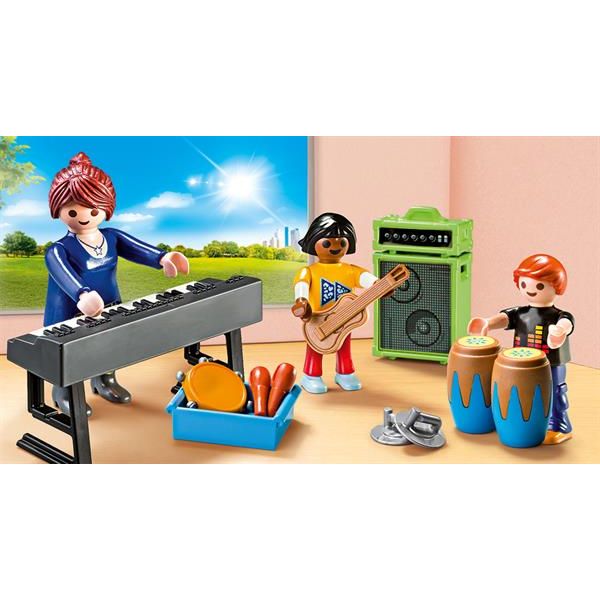 Framsidan »Leksak » Playmobil » PLAYMOBIL City Life Musikundervisningsbox - PL9321 - PLAYMOBIL City Life Playmobil City Life Bra pris:339,00SEK Fåtal i lager Trustpilot Antal Lägg i varukorgen Se mer från: Playmobil City Life Artikelnummer:LEGPL9321 Har du frågor om produkten? Mitt favoritämne i skolan är musikMitt favoritämne i skolan är musik, ropar den lille pojken entusiastiskt och tar gitarren i handen. "Jag ska bli en berömd rockstjärna en dag." "Ja, det kan mycket väl bli så", bekräftar läraren: "Men först måste du öva en hel del." Ivrigt börjar alla spela musik. Keyboard, gitarr, trummor, tamburin, skallror, skolorkestern är välbesatt. Musikskoj: De mindre instrumenten kan förvaras i en låda. För tillbehören finns en koffert tillgänglig. x Tillbaka till PLAYMOBIL City Life